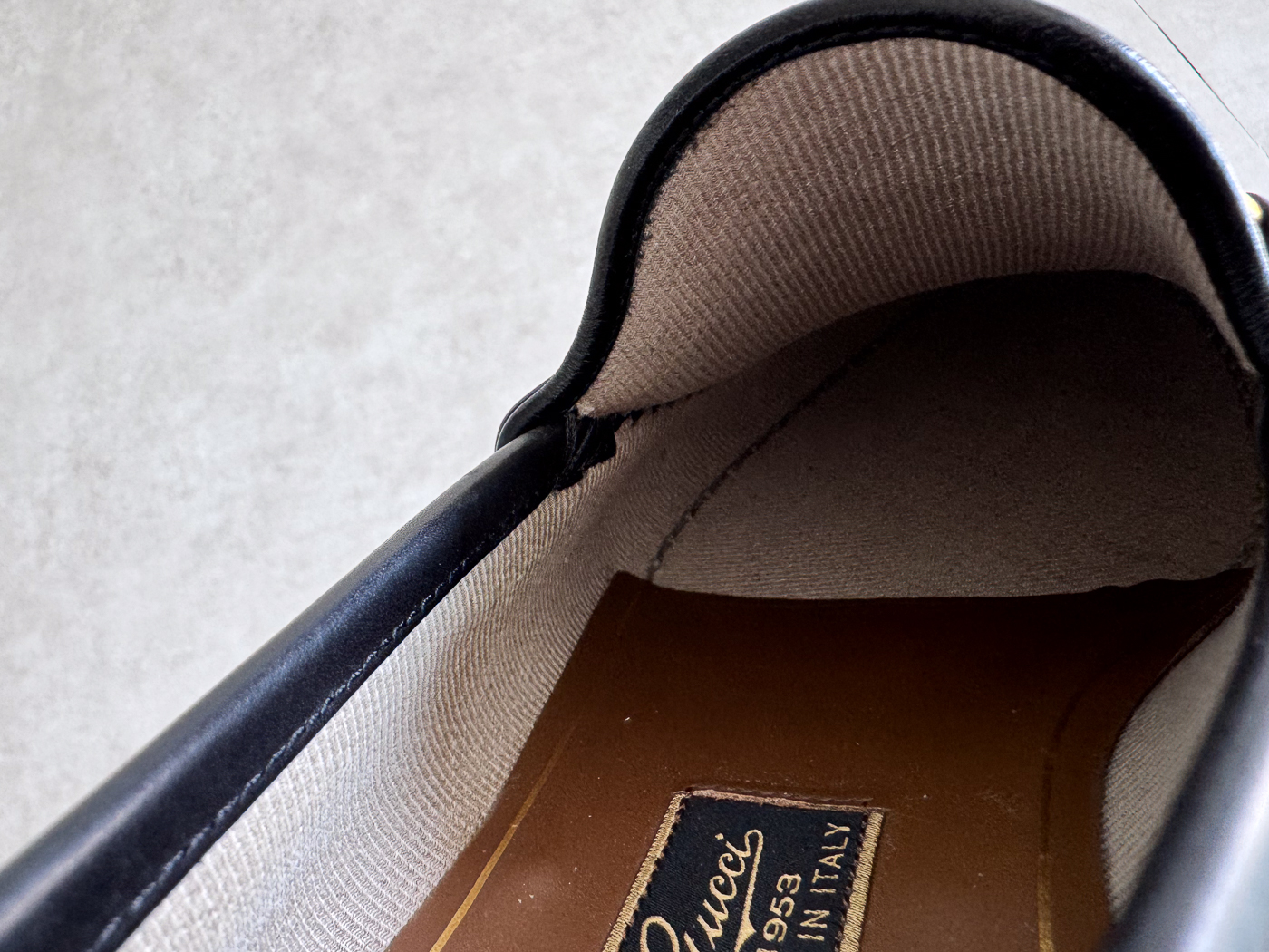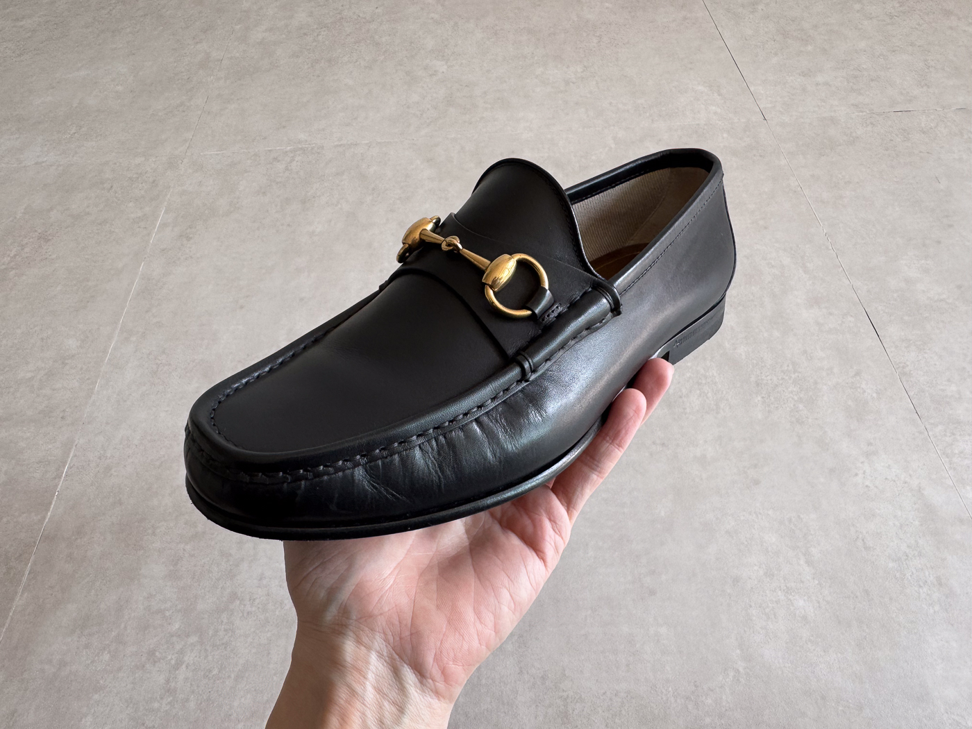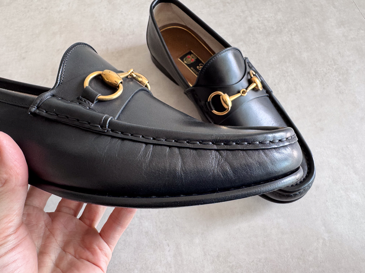 로퍼의 앞코에는 말의 재갈과 굴레에서 영감을 받은 금속 장식, ‘홀스빗’이 얹혀 있으며, 이는 지금까지도 구찌의 상징으로 자리 잡고 있습니다.