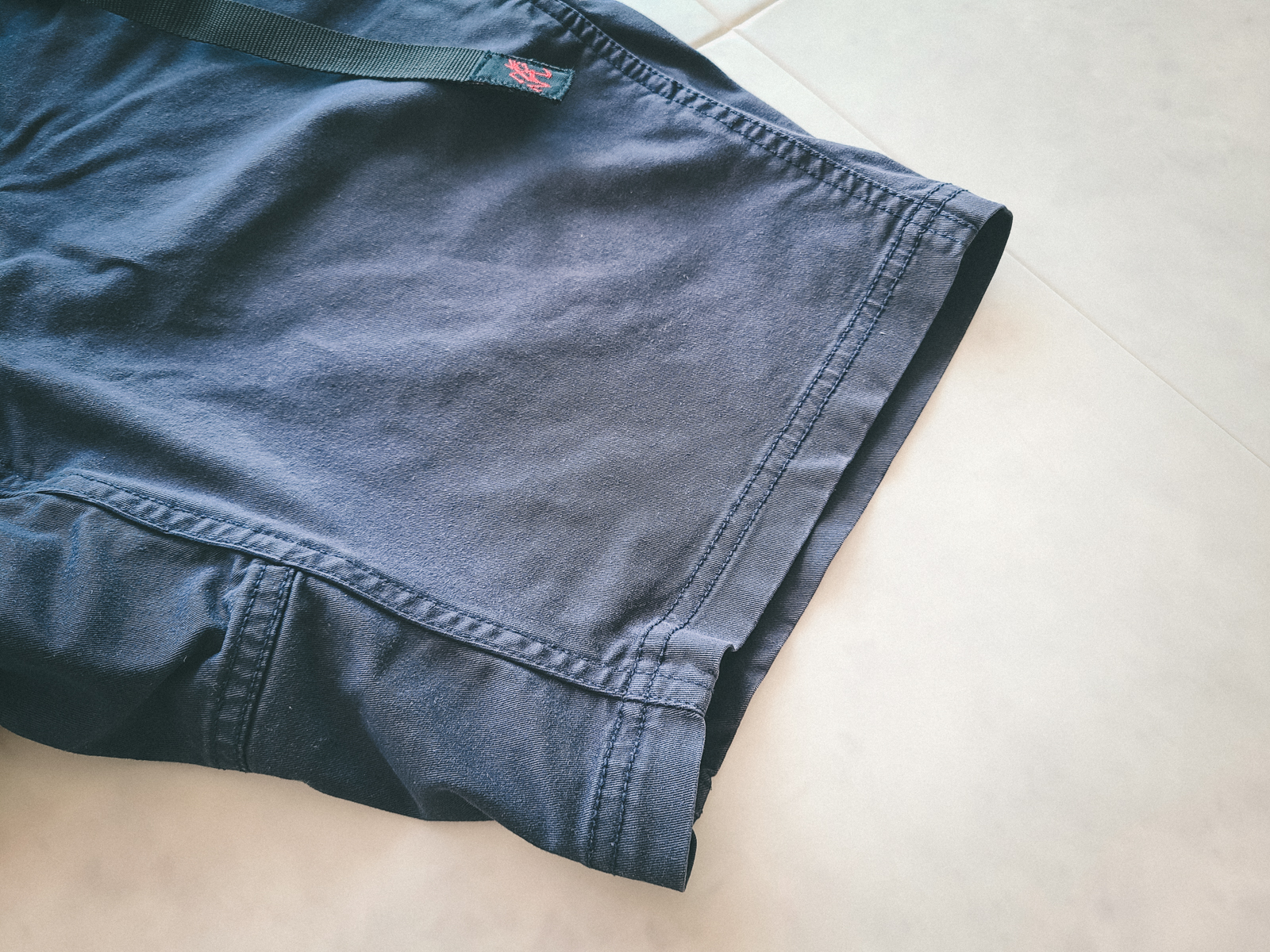 그라미치 팬츠 하면 역시 아이코닉한위빙 벨트와 가랑이 부분 가젯 디자인이 핵심이겠죠. 지금은 아웃도어 브랜드는 물론 일반 패션 브랜드에서도 위빙 벨트 디자인을 볼 수 있지만 역시 그라미치의 오리지널리티를 무시할 수 없습니다. 그리고 그라미치 팬츠는 가먼트 다잉 염색으로 빈티지하면서 좋은 색감이 특징입니다. 쇼츠(반바지) 역시 조금 슬림한 편이고 짧은 기장감의 팬츠로 여름에 입기 너무 좋았습니다.