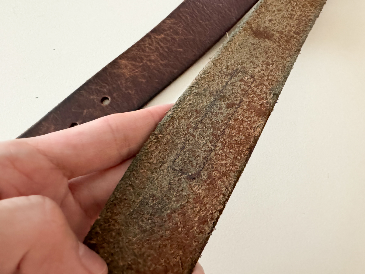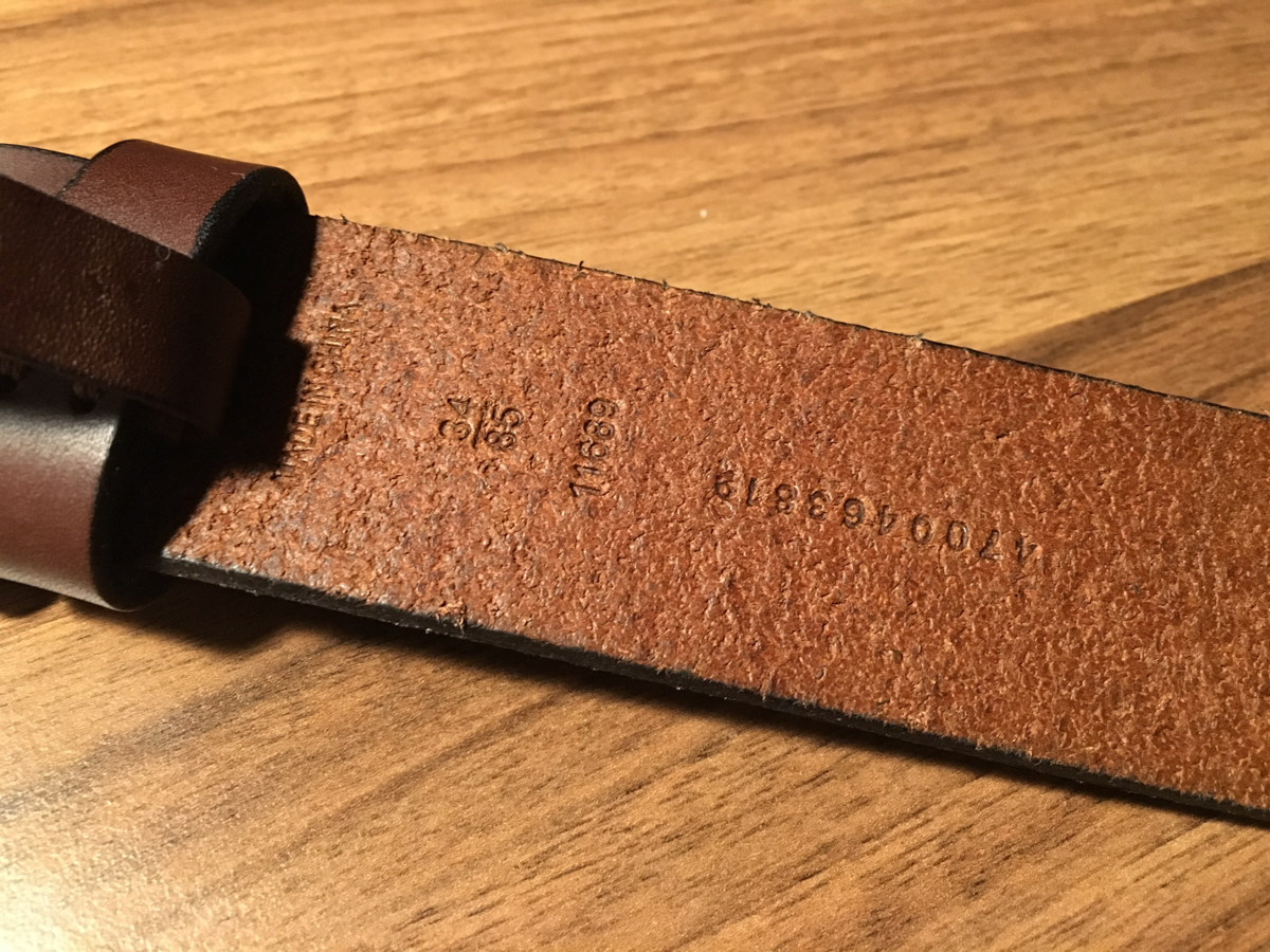 벨트 안쪽에 로고와 사이즈 등이 음각으로 새겨있다.