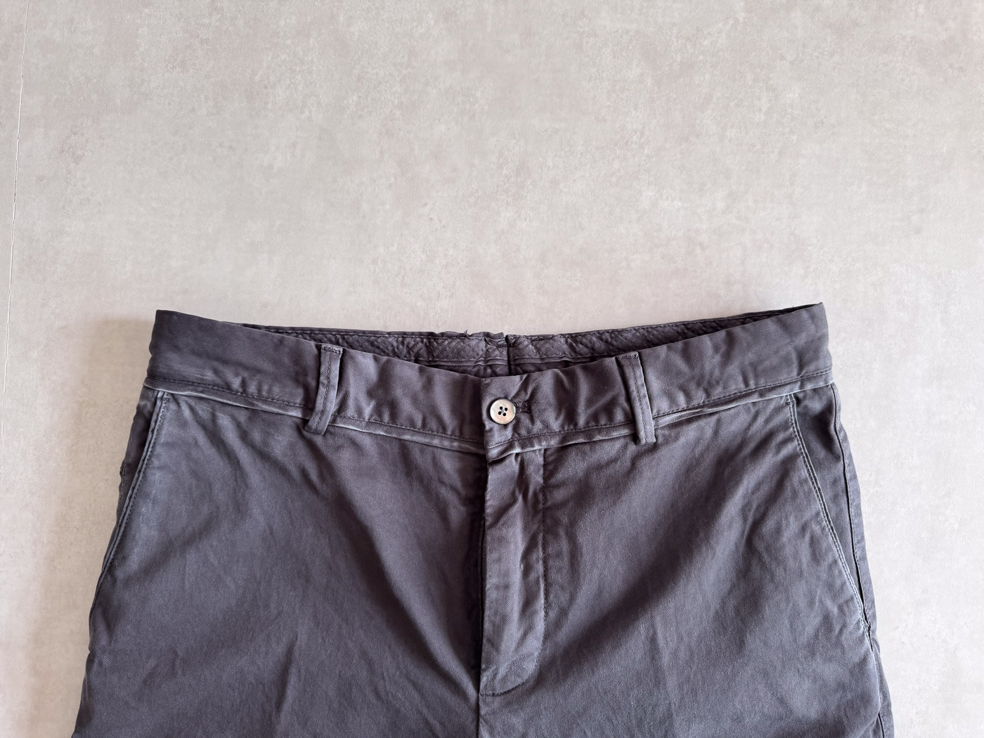 이미 베이지컬러의 치노 팬츠가 있기는 하지만 조금 더 차분하게, 포멀한 느낌을 주는 다크 그레이 컬러는 어쩌면 활용도가 더 좋을 수 있습니다.