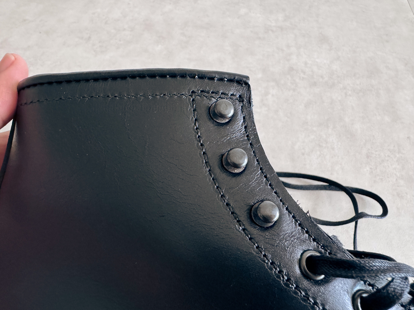 가죽은 매트하게 마감된 기존 레드윙 부츠와 달리 염색과 글레이징, 플레이팅을 거쳐 균일한 색감과 광택을 보여줍니다.