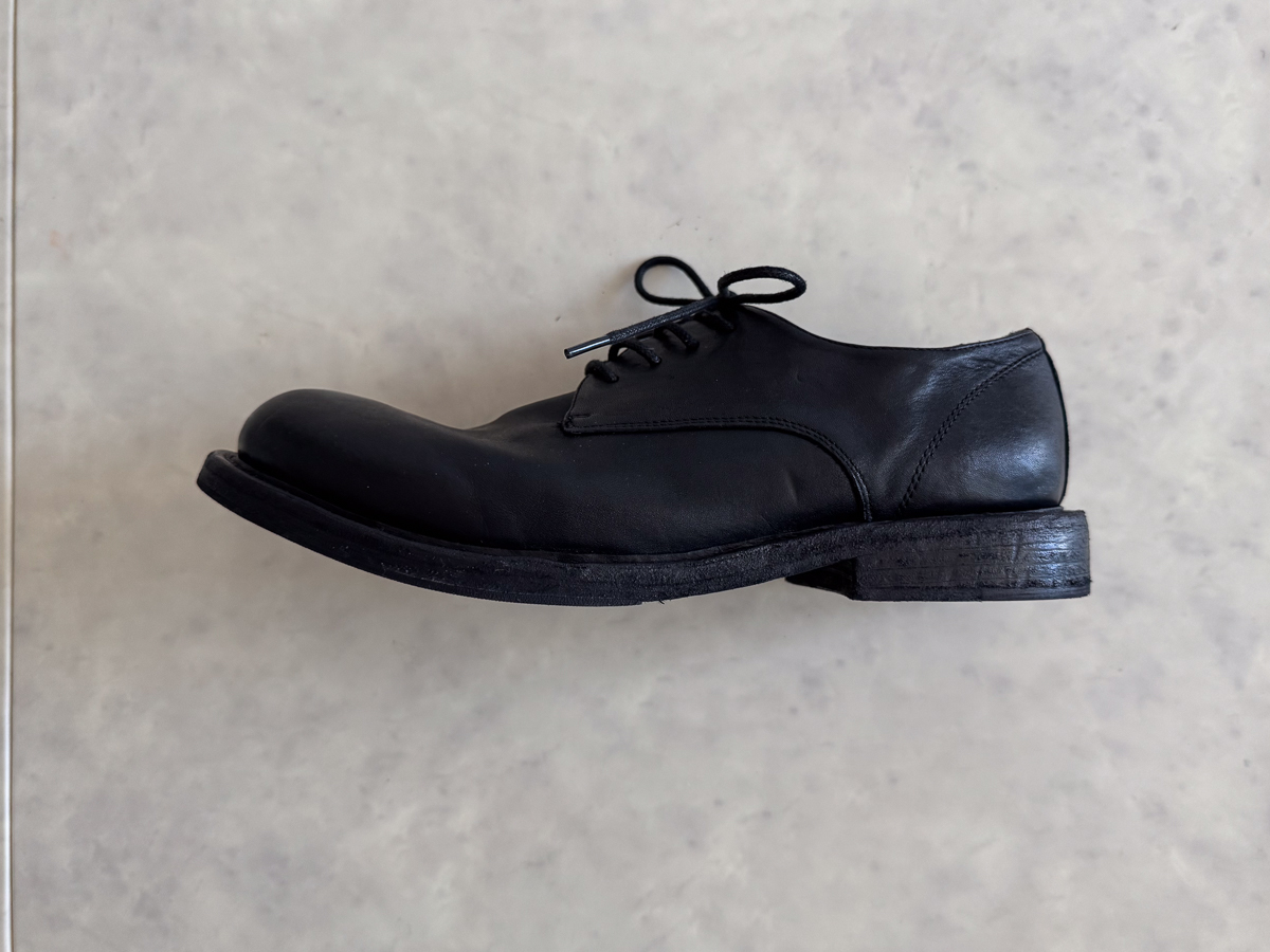 이전의 마르셀 주카 미디어 스타일처럼 미니멀한 디자인에 무심한 듯 포인트를 줄 수 있는 더비 슈즈로, 가격 대비 만족스러운 제품입니다.