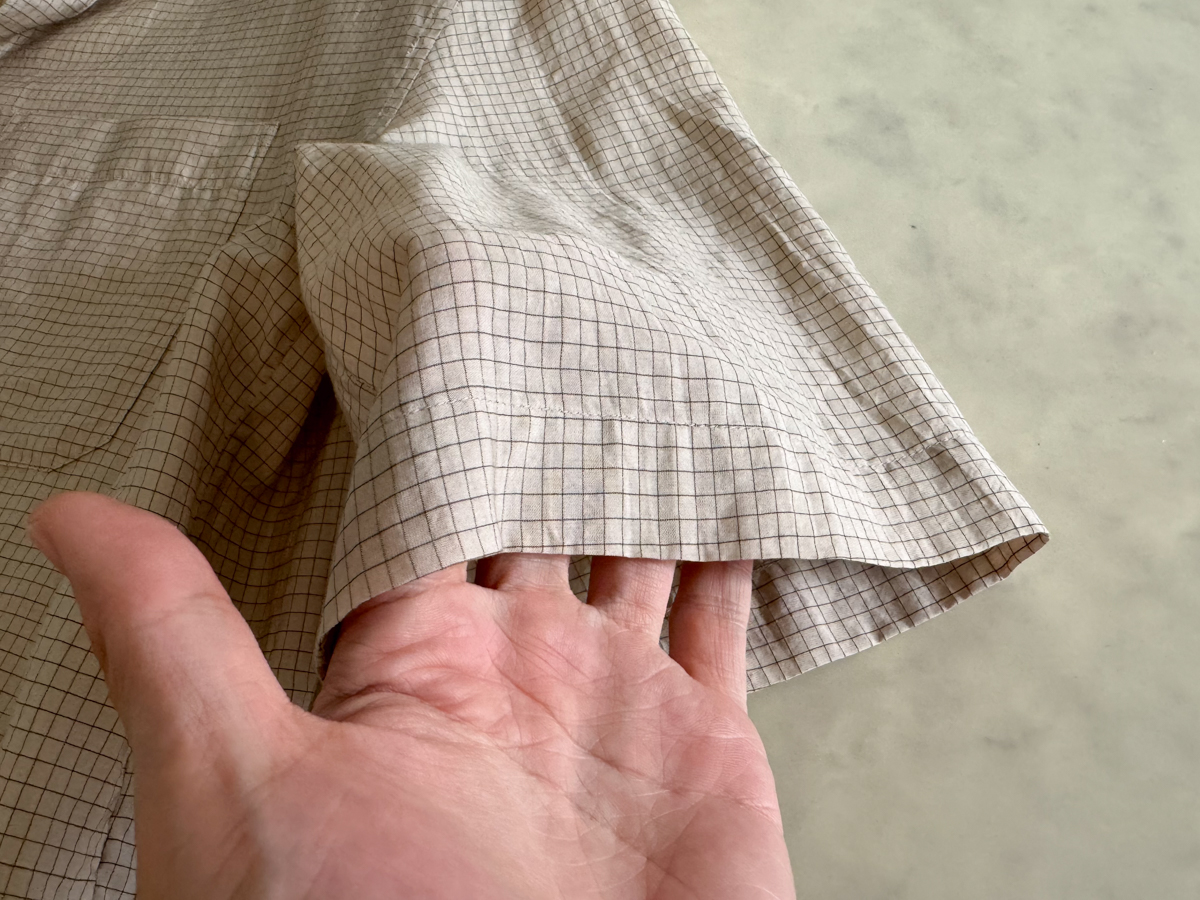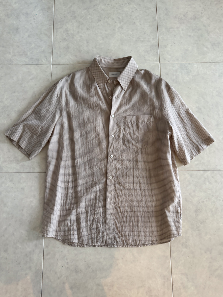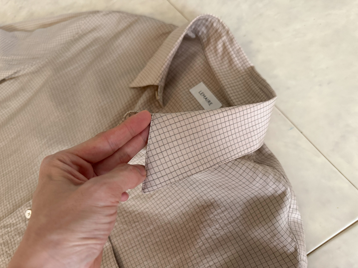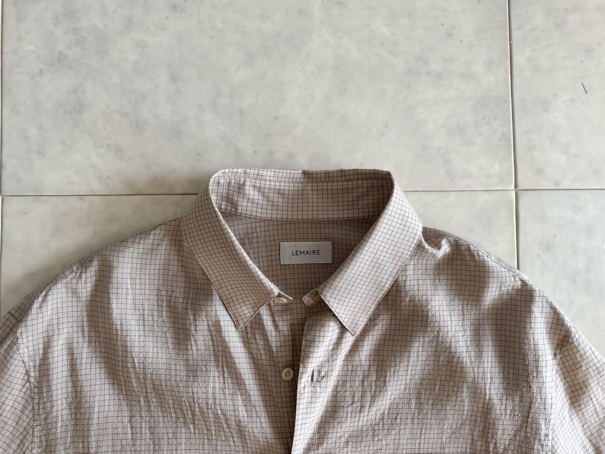 기본적인 셔츠의 디자인을 르메르 특유의 소재감과 패턴으로 여유롭고 부드러우며 편안한 실루엣을 보여줍니다.