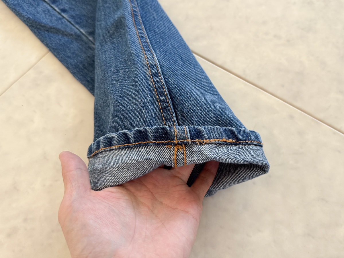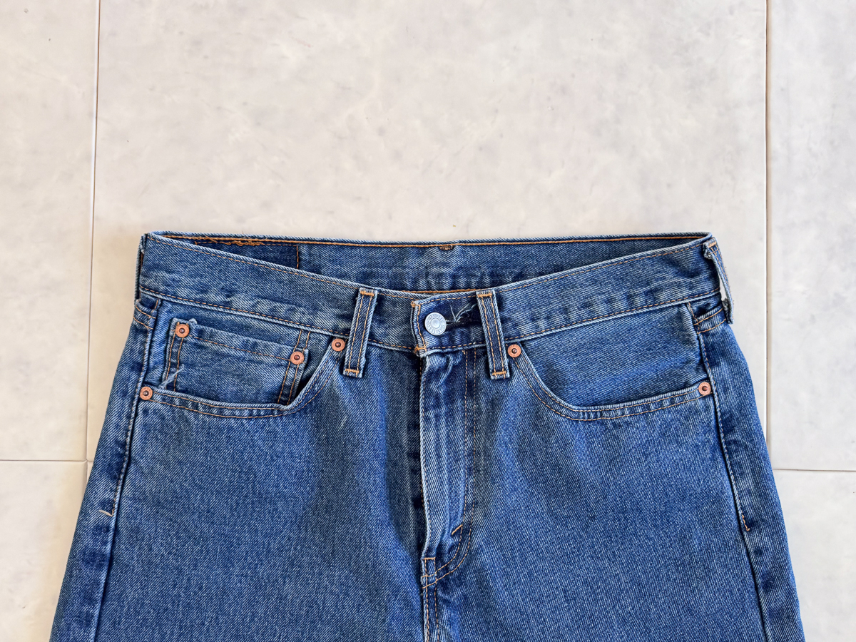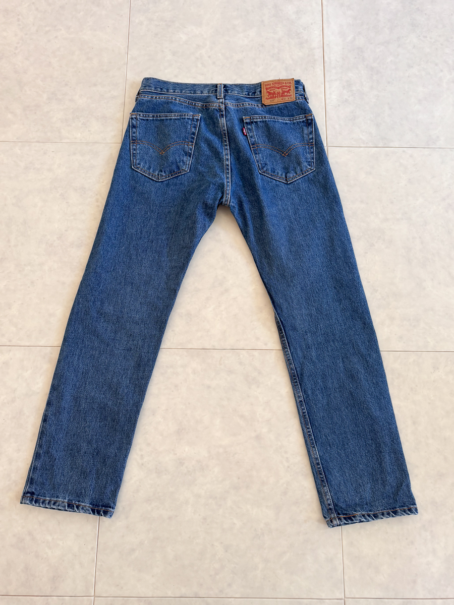 리바이스 505는 정 사이즈로 나오는 편입니다. 저는 31X30 사이즈를 선택했는데, 평소 30 기준으로 허리는 넉넉하고 기장은 적당했습니다. (기존에 구매했던 517 보다는 기장이 긴 편이네요)