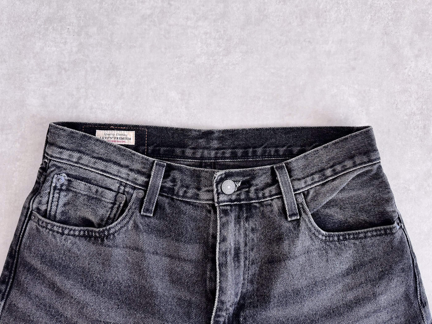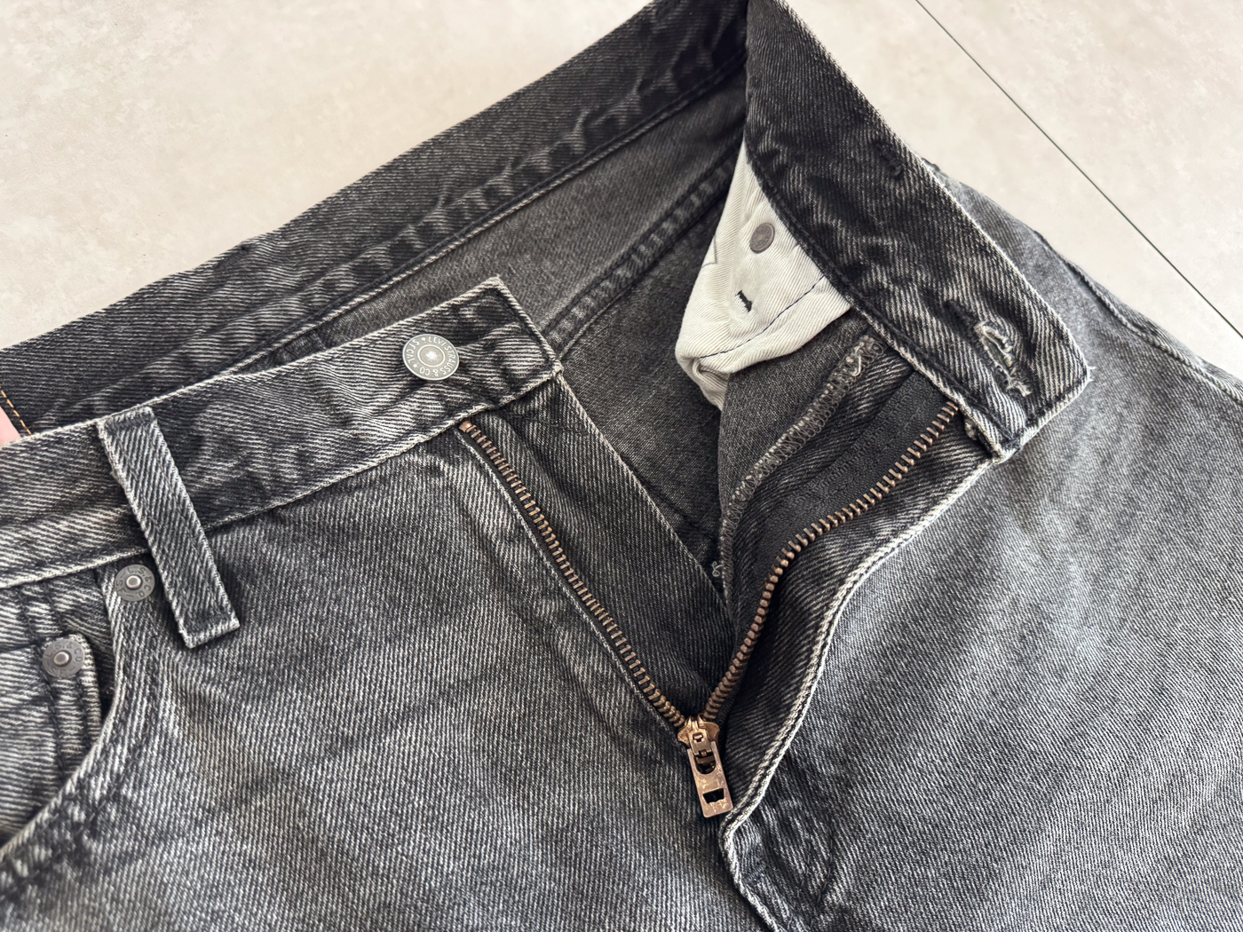 501 오리지널보다는 전체적으로 넉넉하고, 568(루즈)이나 실버탭보다는 덜 과한, 딱 입기 좋은 세미 와이드~스트레이트 핏을 보여줍니다. 지퍼 플라이(Zipper Fly) 방식으로 착용이 간편합니다.