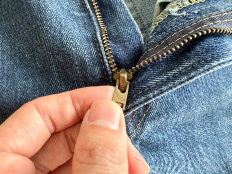 자연스러운 워싱, 에이징 된 뒷면 가죽 패치, 구리 리벳, 탈론 지퍼 등 좋은 퀄리티와 디테일을 보여줍니다.