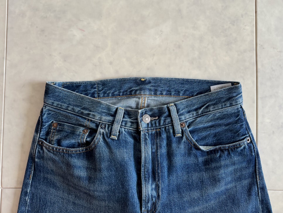 54501 톨 테일은 적당한 중청 색감에 가벼운 원단감으로 좋은 착용감과 핏 감입니다.