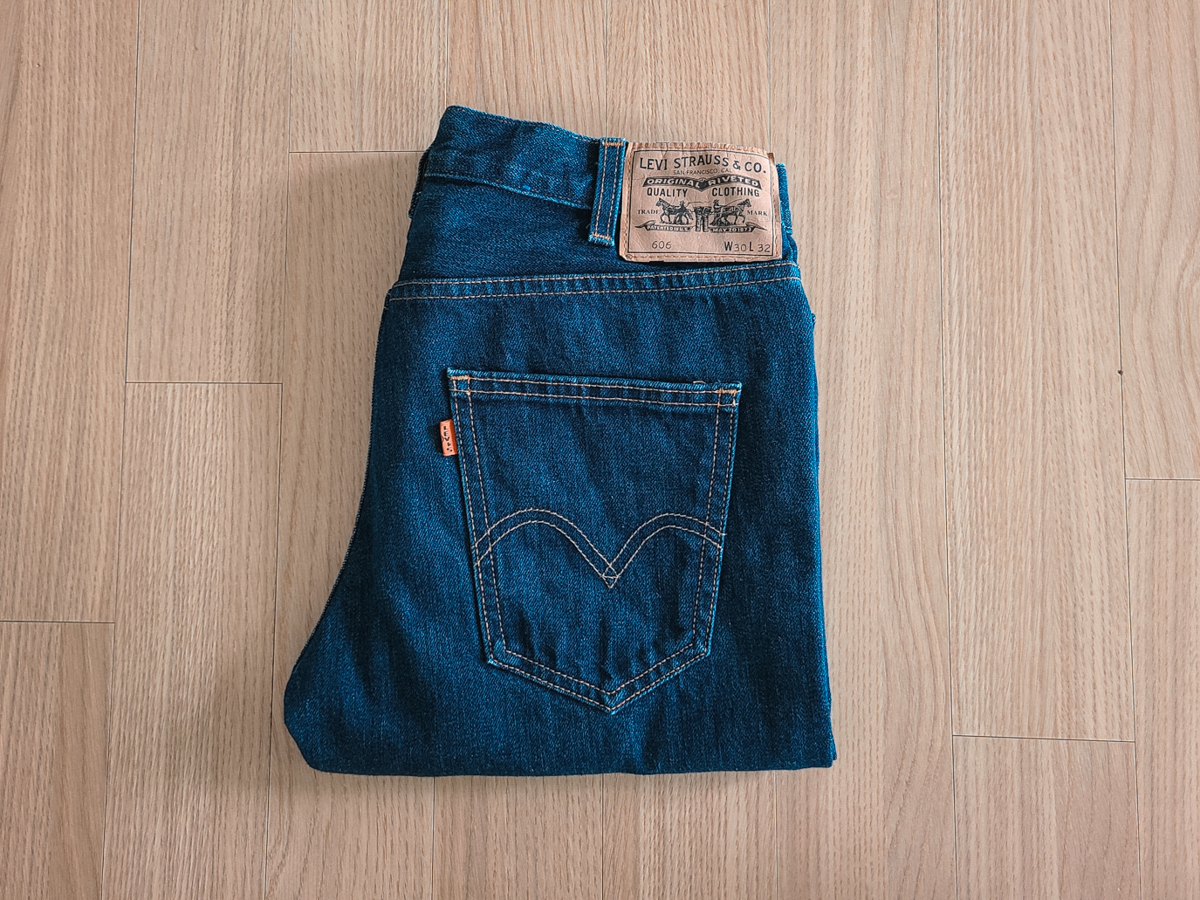 리바이스 LVC 606은 1960년 당시 보다 슬림해진 핏과 부자재를 줄이는 등의 원가 절감을 반영합니다. 이는 기존 501과 다르게 젊은 세대를 위해 히든 리벳, 가죽 패치 등의 부자재를 줄이고 바텍, 종이 재질 패치로 처리하는 등 저렴하게 출시되었던 점인데요. 이 외에도 탈론 지퍼 플라이, 오렌지 탭 등의 특징이 있습니다.