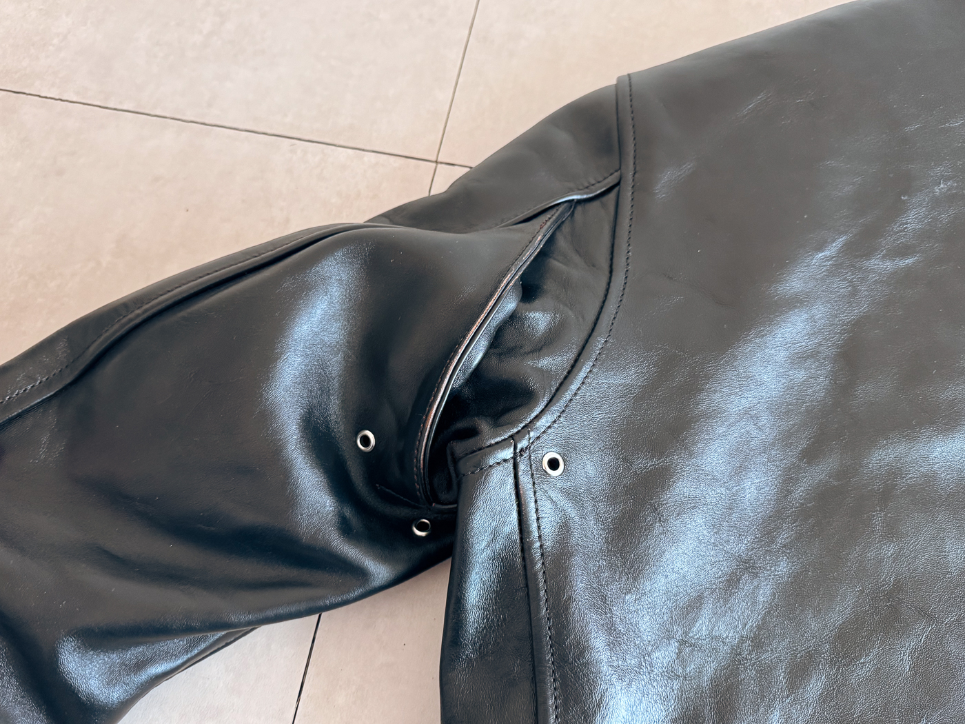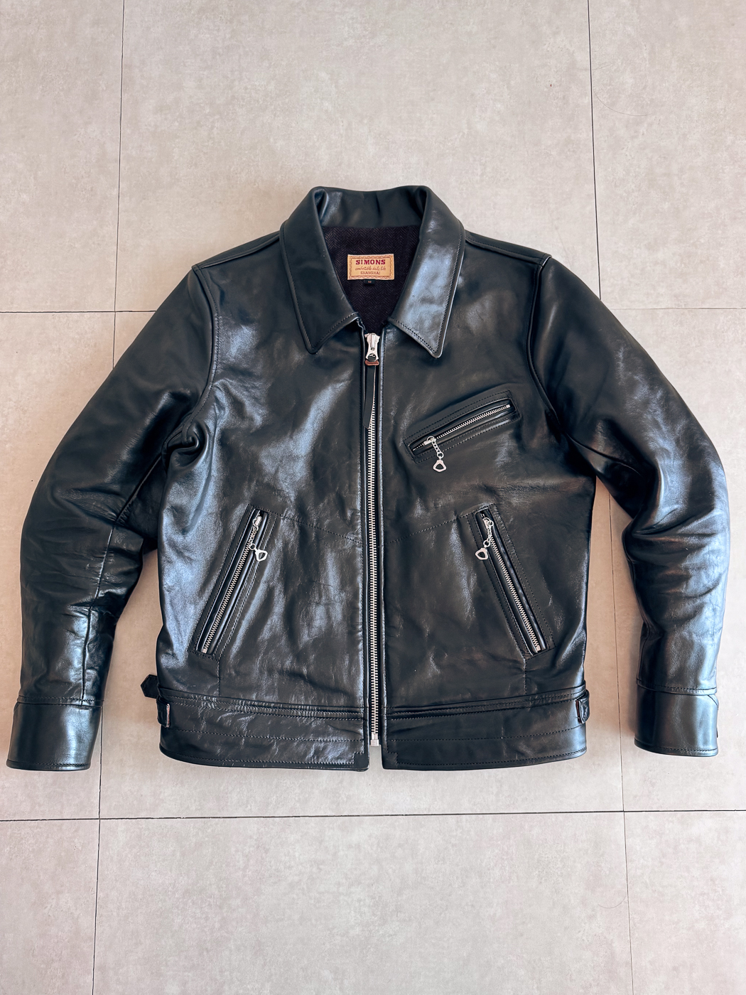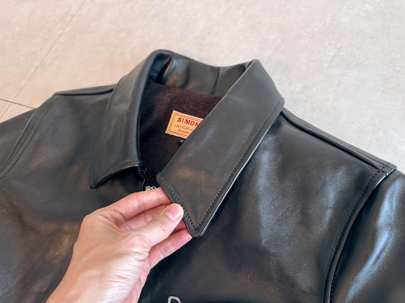 30년대 스포츠 재킷 실루엣에 차심 말가죽이 쓰였고 마침 실측 사이즈가 잘 맞을것으로 판단하여 일단 실패하더라도 수업료라고 생각하고 주문해봤는데 첫인상부터 기대 이상이었습니다.