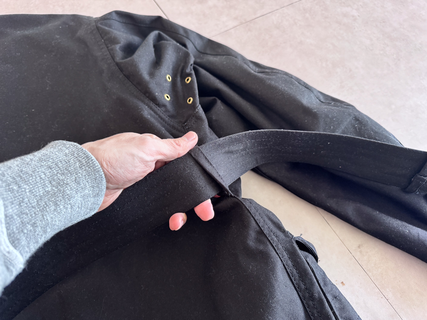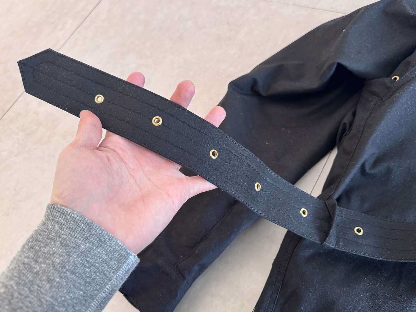 - 단단한 보호: 거친 바람을 막아주는 8oz 왁스 코팅 원단과 목을 감싸주는 코듀로이 칼라, 그리고 허리 라인을 잡아주는 벨트는 이 옷을 입었을 때 마치 갑옷을 입은 듯한 단단한 느낌을 줍니다.