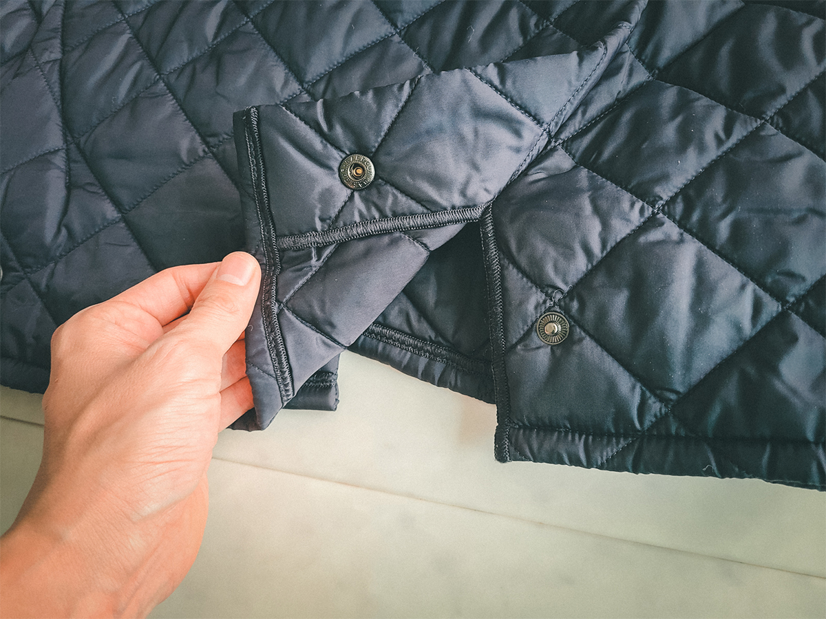 겉감과 누빔 속 충전재는 가볍고 견고한 폴리아미드 나일론 재질로 되어 있고 전면부 큼지막한 양 사이드포켓과 안쪽 지퍼로 된 포켓이 있어 수납이 용이합니다.