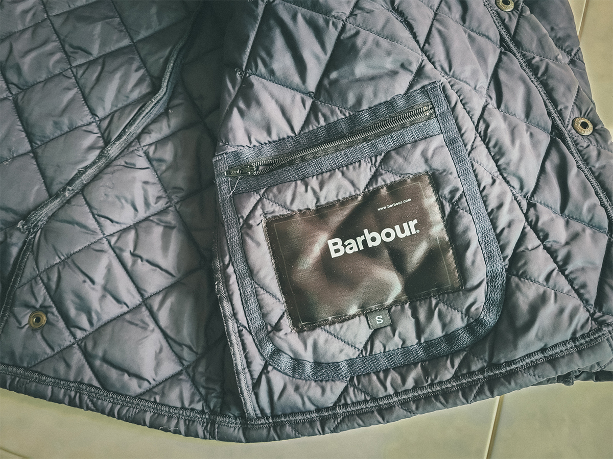 리더스데일은 바버의 상징적인 재킷 중 하나로 클래식한 코듀로이 칼라와 바버의 시그니처 다이아몬드 퀼팅 누빔 디테일을 보여줍니다.