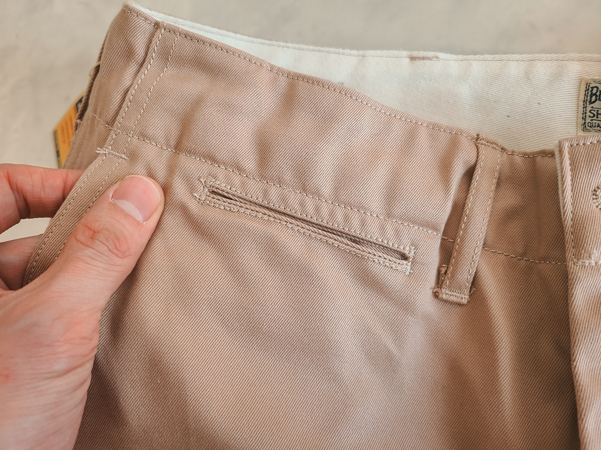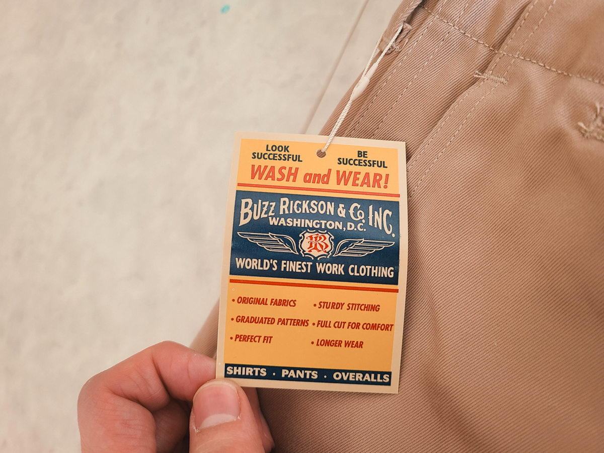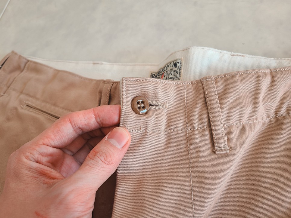 이렇게 사이즈가 프린팅 되어 있는것도 (군복에서 볼 수 있는) 복각 치노팬츠에서 흔히 볼 수 있는 디테일.