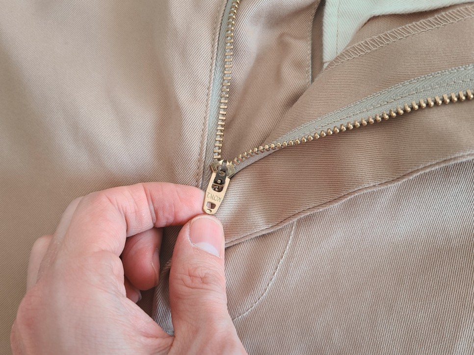 지퍼 플라이 스펙으로 45 TALON 지퍼가 쓰였다.