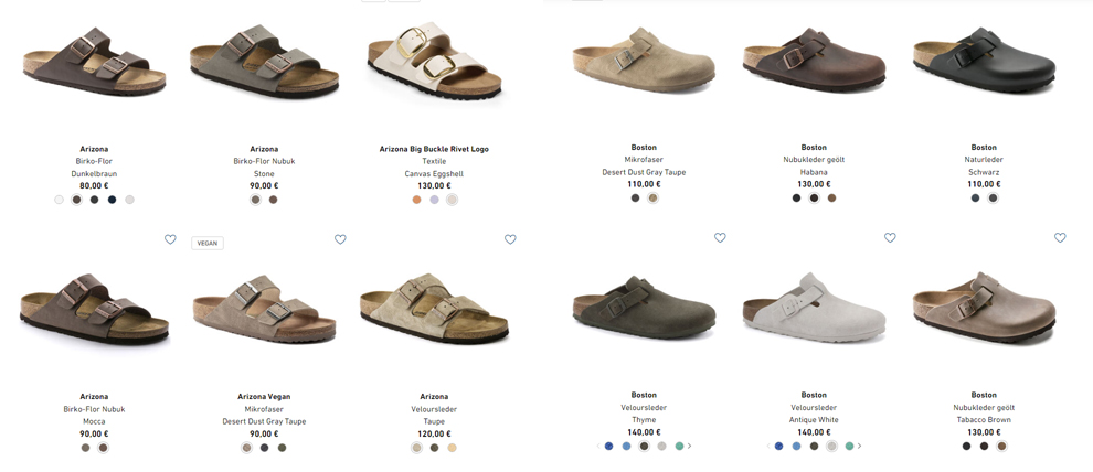 버켄스탁만의 유니크한 디자인의 제품들