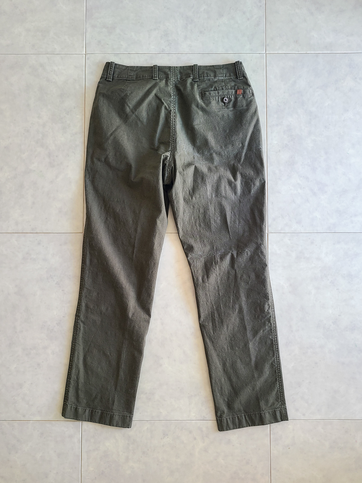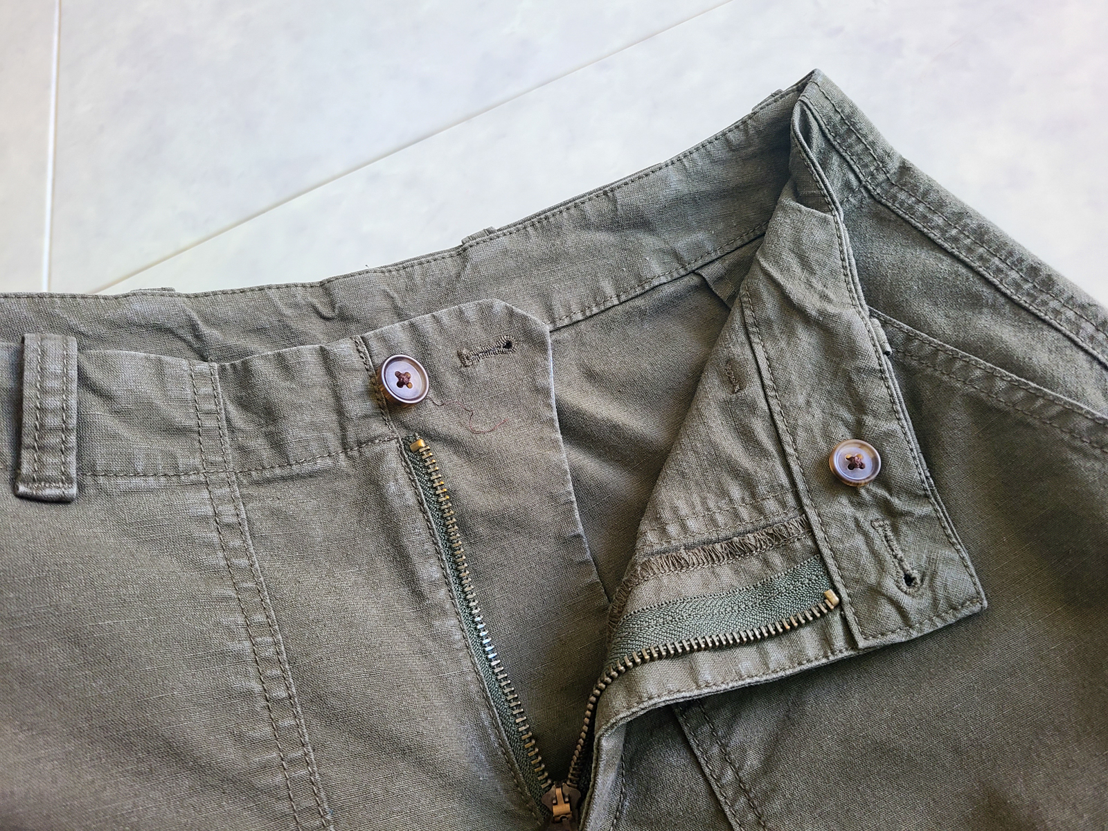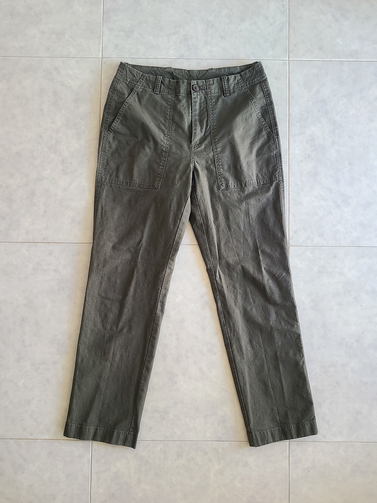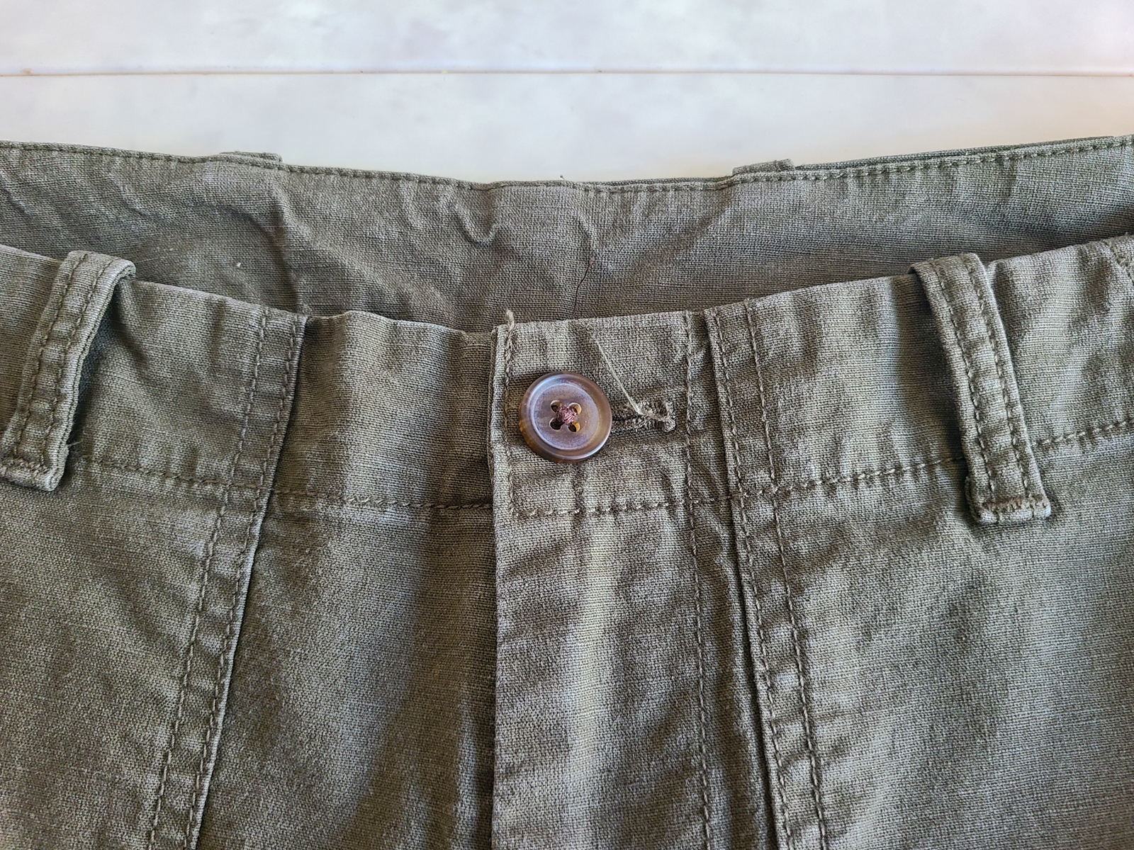 제가 보유한 이 퍼티그 팬츠는 퍼티그의 일반적인 디테일인 큼지막한 사이드포켓과 빈티지한 올리브 그린 색감이 좋았습니다. 특이한 점은 원단이 면과 리넨 혼방 소재로 되어 있어 매우 가볍고 한 여름에 입기에도 시원하고 좋았습니다.