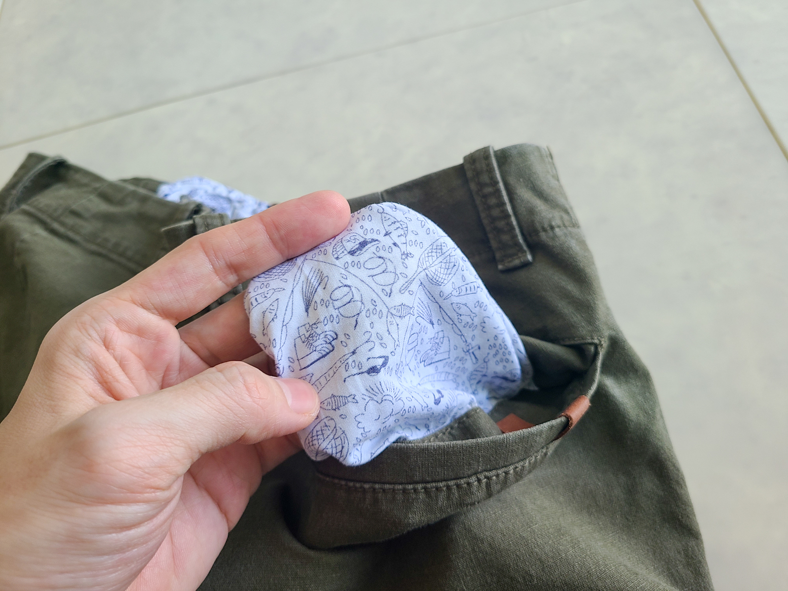 뒤 포켓에는 덮개 없는 일반 포켓, 사이드 어저스트는 생략되어 있어 워크웨어에 초점을 맞추기 보다는 무난한 캐주얼로 입기 좋았습니다.
