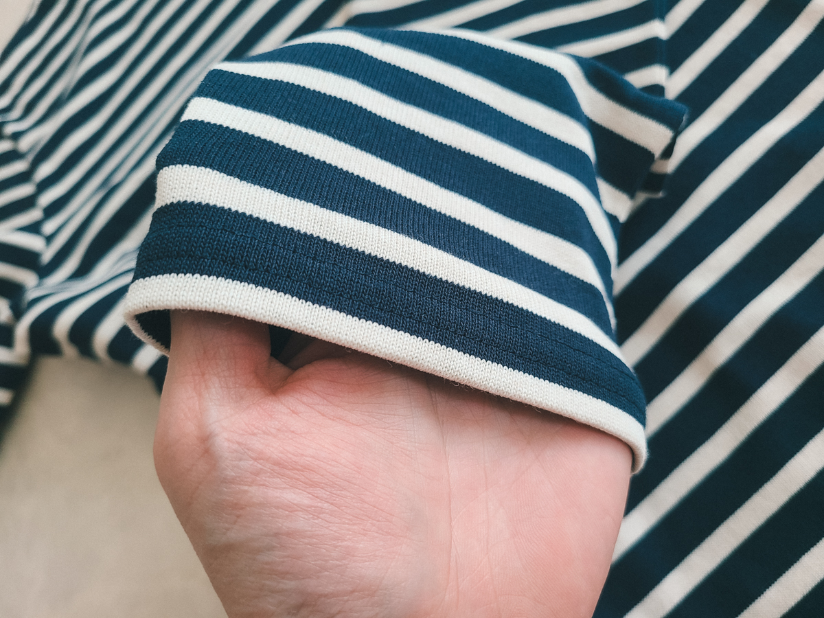 1950년대와 1970년대에 이르러 큰 인기를 끌고 지금까지도 세인트 제임스의 대표 상품인 스트라이프 티셔츠는 크게 3가지 핏으로 출시되고 있습니다. 길도, 메르디앙, 밍콰이어이고 특징은 아래와 같습니다. 메르디앙을 구매한 이유는 어느 정도 두께감이 있으면서 라운드넥으로 무난하게 입기 좋은 점 때문입니다. 오리지널 보트넥 감성을 즐기고 싶다면 길도 핏을 추천합니다.