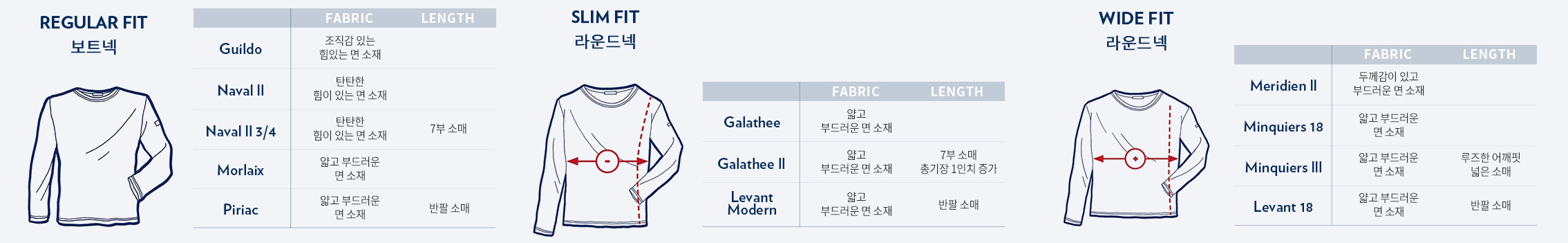 세인트 제임스에는 스트라이프 티셔츠 외에도 울 소재 니트, 코트, 액세서리 등 다양한 상품이 판매되고 프랑스 생산으로 훌륭한 품질과 감성을 보여줍니다. 그래도 역시 대표 상품은 스트라이프 티셔츠입니다. 대표적인 상품 몇 가지와 차이점 알아보겠습니다. 아이코닉한 세인트 제임스의 티셔츠는 프랑스에서 생산되며 장인의 꼼꼼한 검수를 통해 판매됩니다. 세탁 시 수축이 발생하고 넥 라인 형태, 두께에 따른 호불호가 있으니 참고하셔서 구매하시면 됩니다.