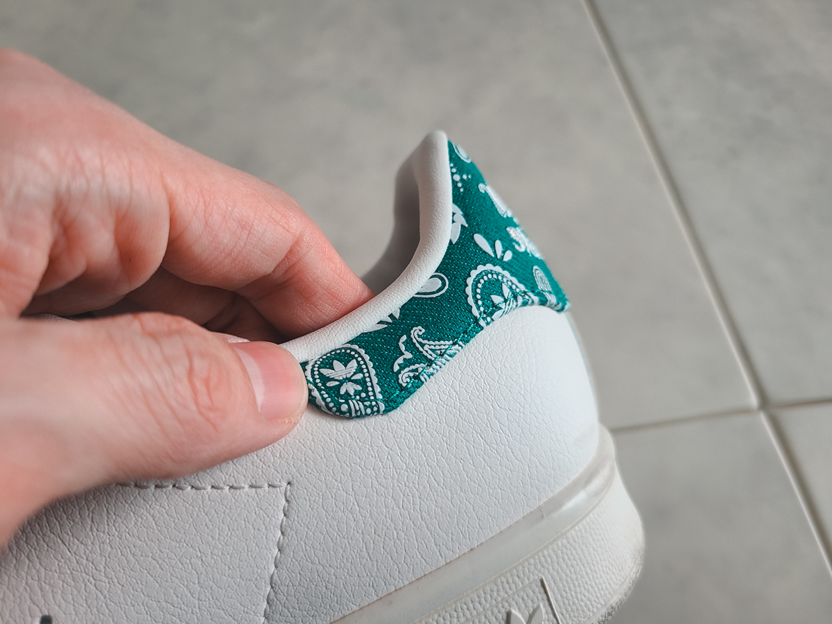 뒷 축에 스탠 스미스 오리지널리티를 보여주는 녹색 덧댐이 있지만 이 제품은 페이즐리 문양이 추가되어 보다 화려하고 포인트가 되어줍니다.