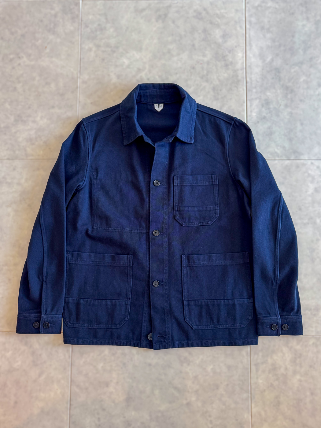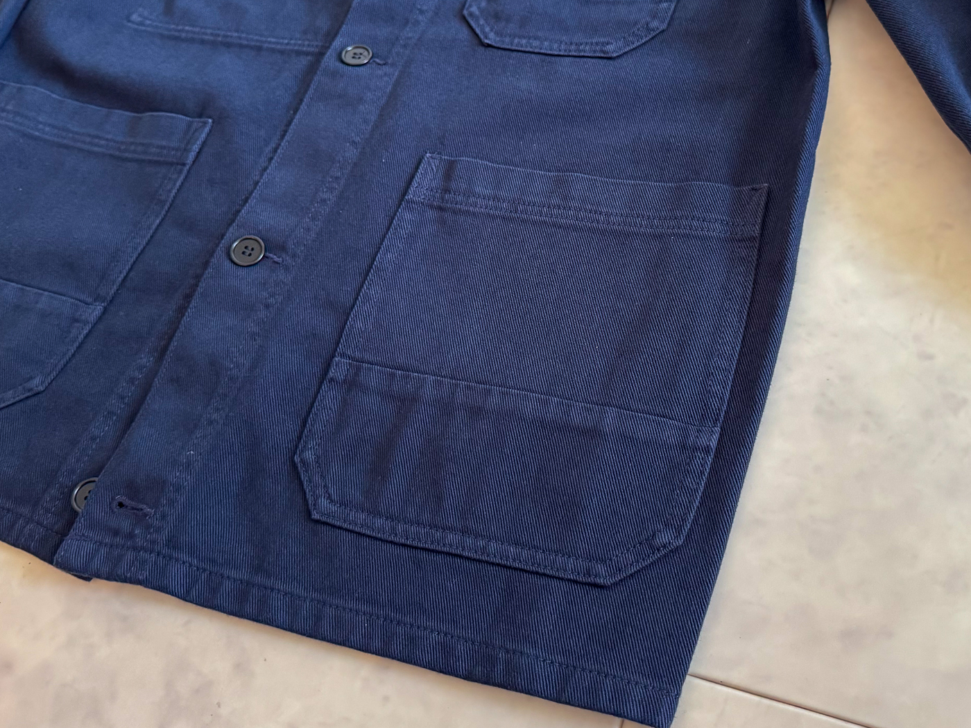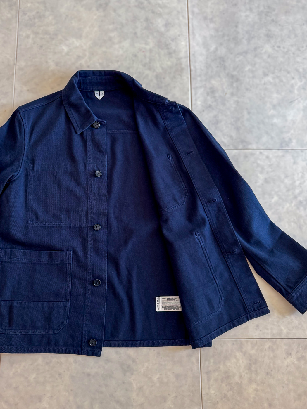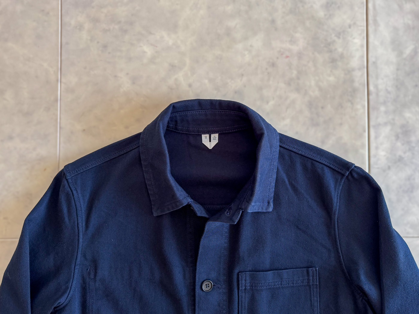 이번에 소개할 제품은 오버다이드 트윌 오버셔츠(다크 블루)로, 프렌치 워크 재킷에서 영감을 받은 디자인이 특징입니다. 간절기 아우터로 활용하기 좋고, 겨울철에는 이너로도 적합한 제품입니다.