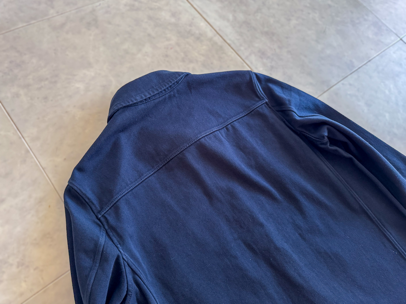 이번에 소개할 제품은 오버다이드 트윌 오버셔츠(다크 블루)로, 프렌치 워크 재킷에서 영감을 받은 디자인이 특징입니다. 간절기 아우터로 활용하기 좋고, 겨울철에는 이너로도 적합한 제품입니다.