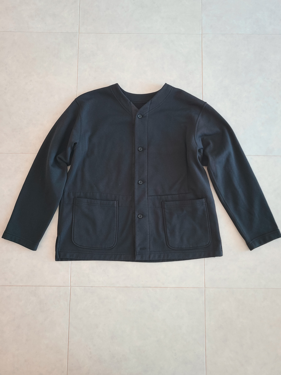칼라가 없는 가디건 형태의 재킷으로 이너에 티셔츠나 셔츠에 레이어드하기 좋았습니다.