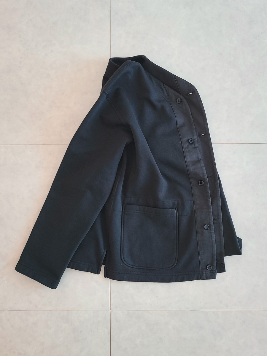 칼라가 없는 가디건 형태의 재킷으로 이너에 티셔츠나 셔츠에 레이어드하기 좋았습니다.
