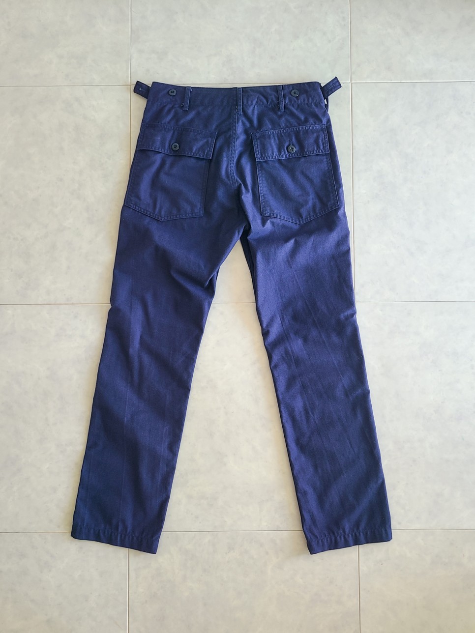 살짝 보라빛이 도는 네이비 컬러의 엔가 퍼티그 팬츠.