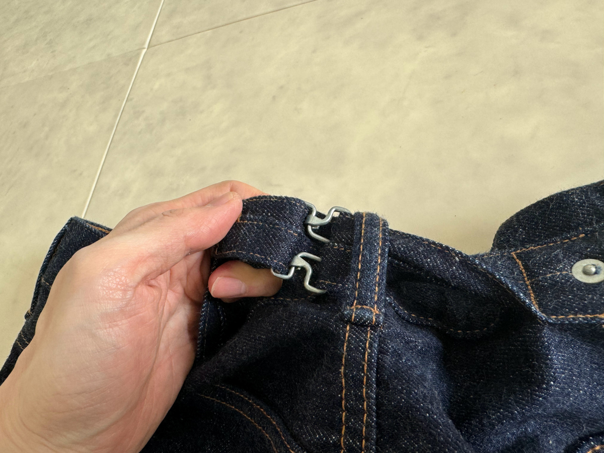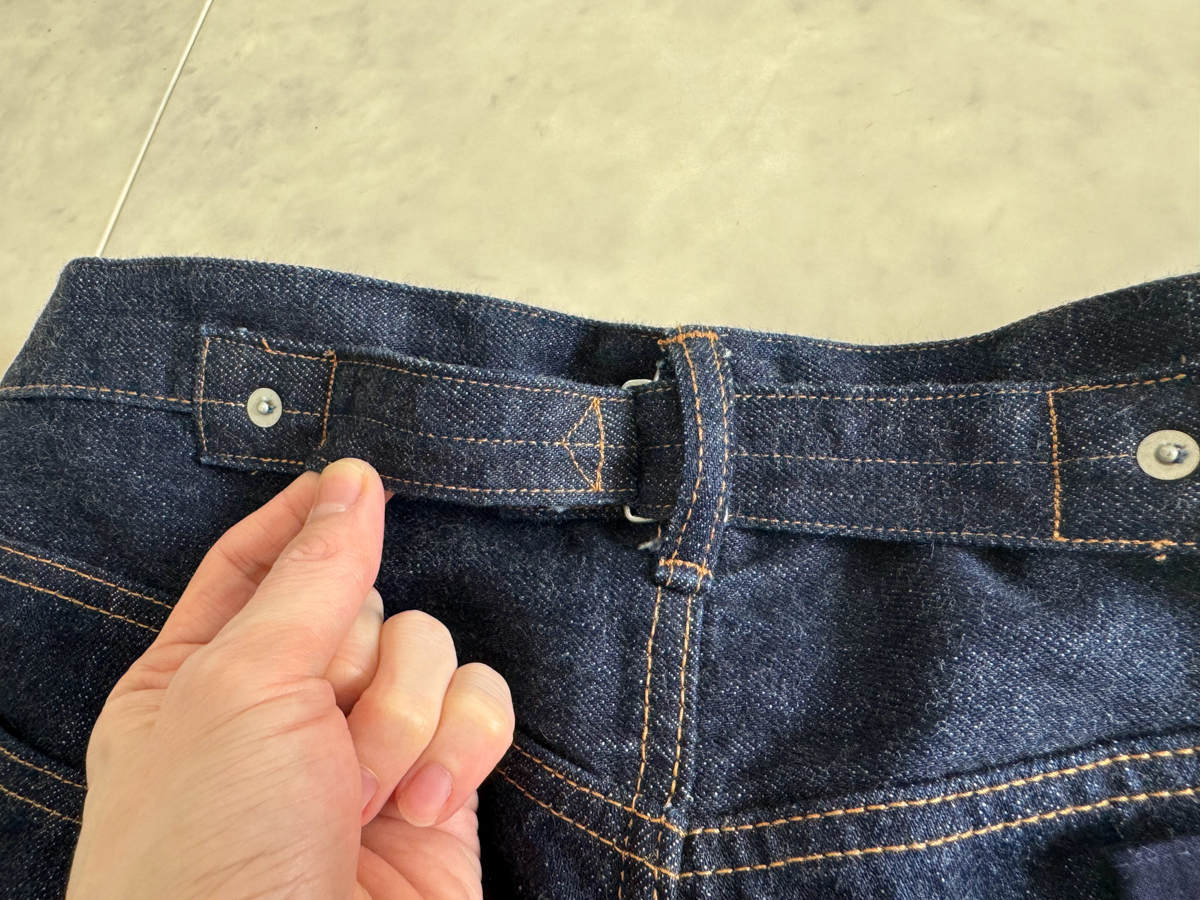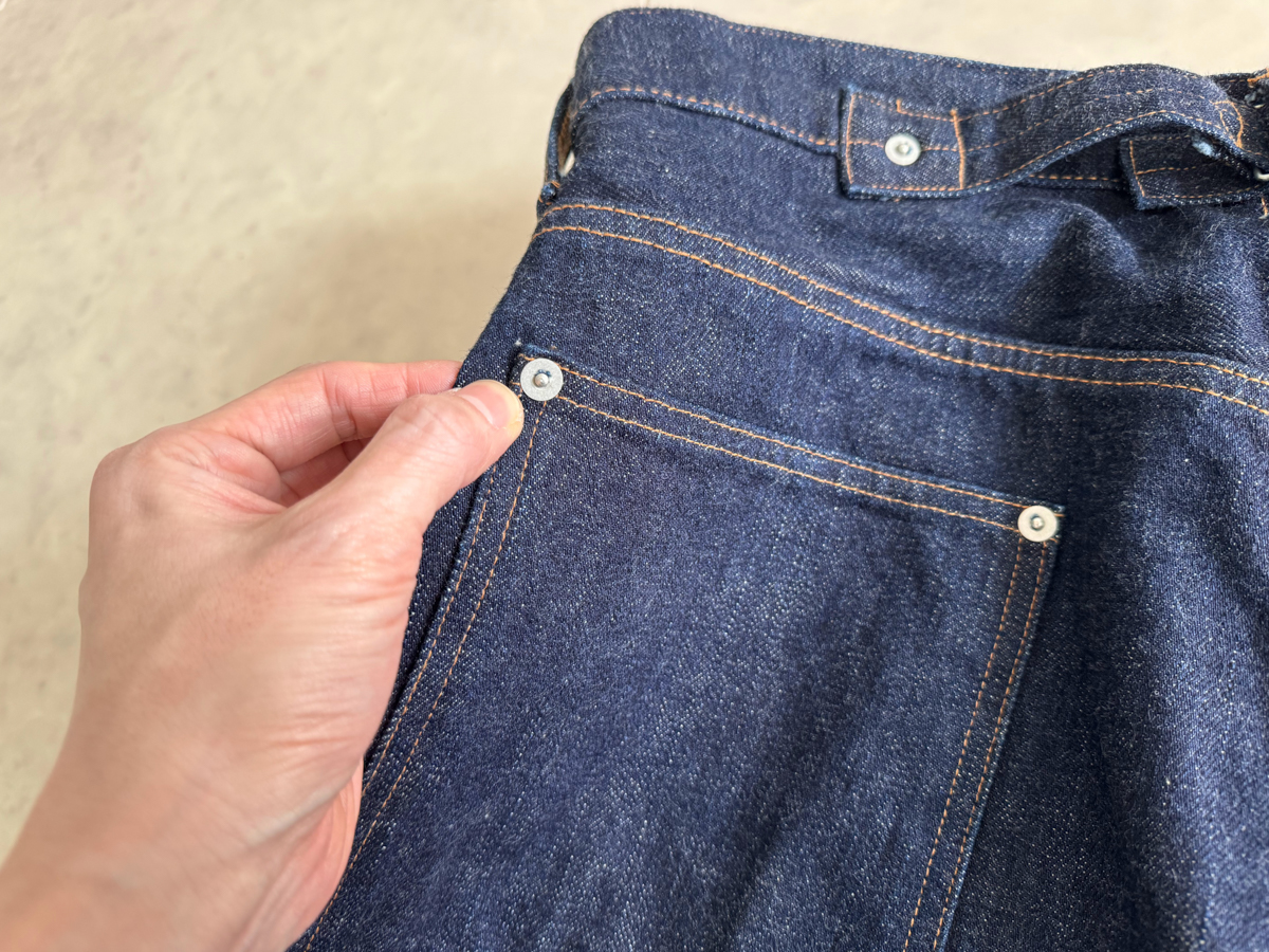 백 포켓 히든 리벳, 가랑이 쪽 리벳, 허리 뒤춤 신치백 등 40년대 이전 데님 팬츠 디테일이 재밌습니다.