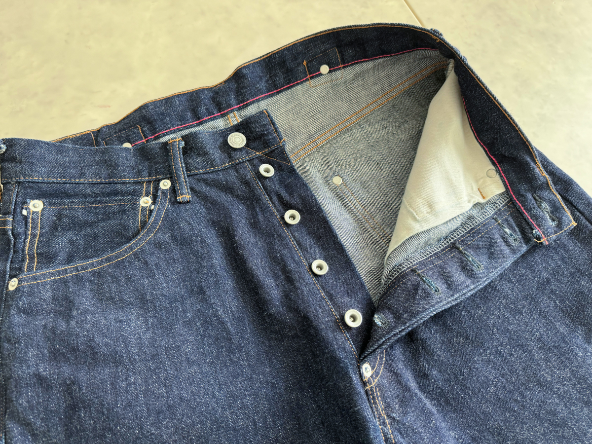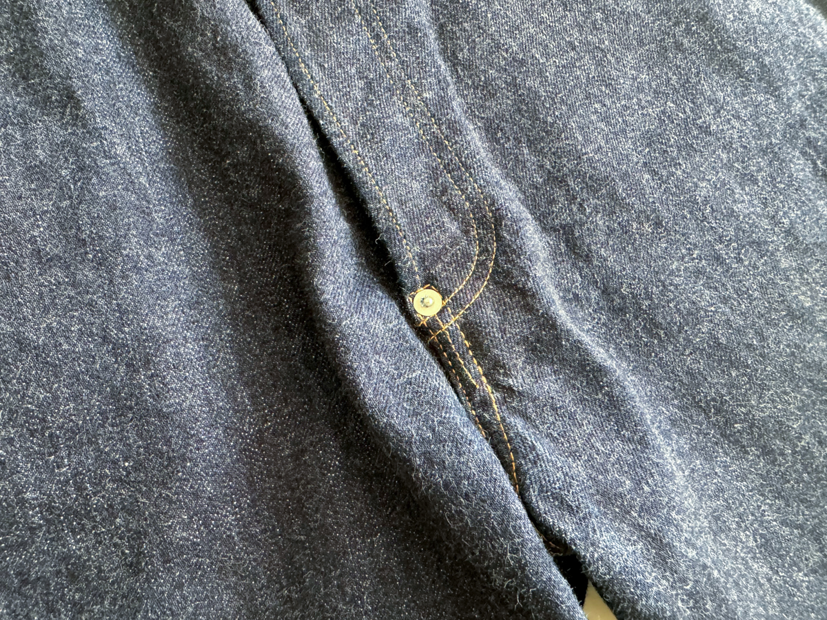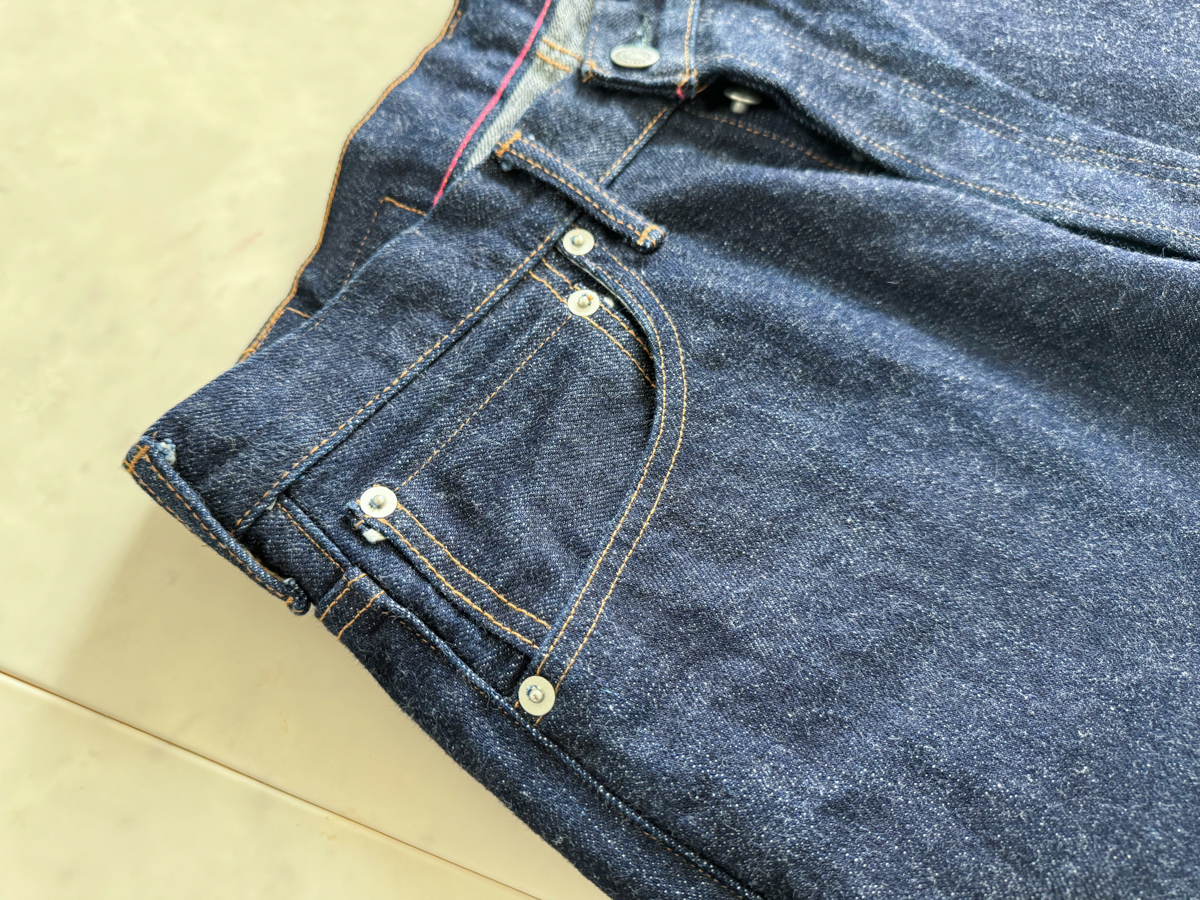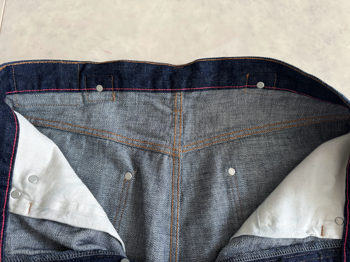 백 포켓 히든 리벳, 가랑이 쪽 리벳, 허리 뒤춤 신치백 등 40년대 이전 데님 팬츠 디테일이 재밌습니다.