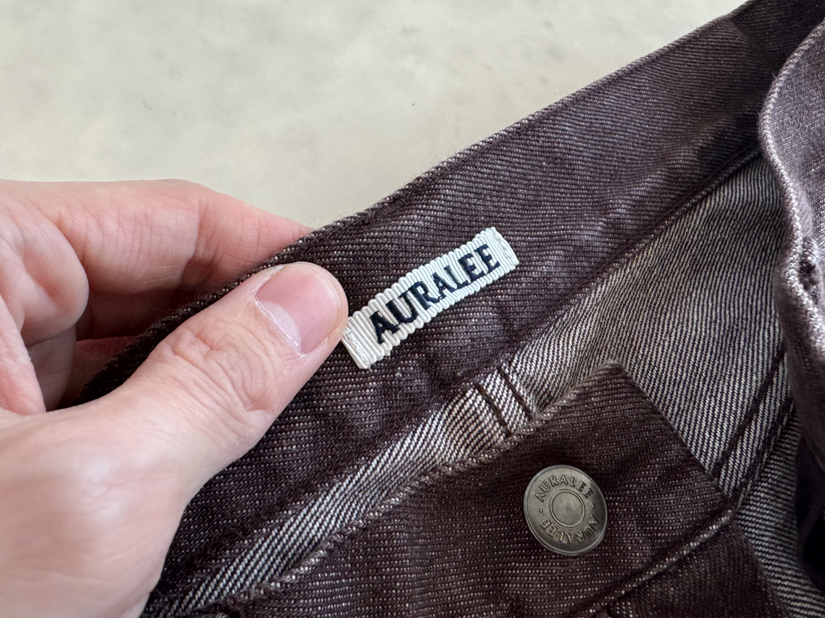 이번에는 (저번 인디고에 이어) 오라리의 시그니처 아이템인 하드 트위스트 데님 팬츠 중에서도 특별한 매력을 지닌 브라운 컬러를 소개하고자 합니다. 인디고 데님의 익숙한 매력을 넘어, 브라운 컬러만의 독특한 분위기와 고급스러운 무드가 포인트입니다. 사실 사진에서 오라리 브라운 데님의 맛이 제대로 표현되지 않을 수 있으나 특유의 색감이 실루엣과 잘 어울립니다.