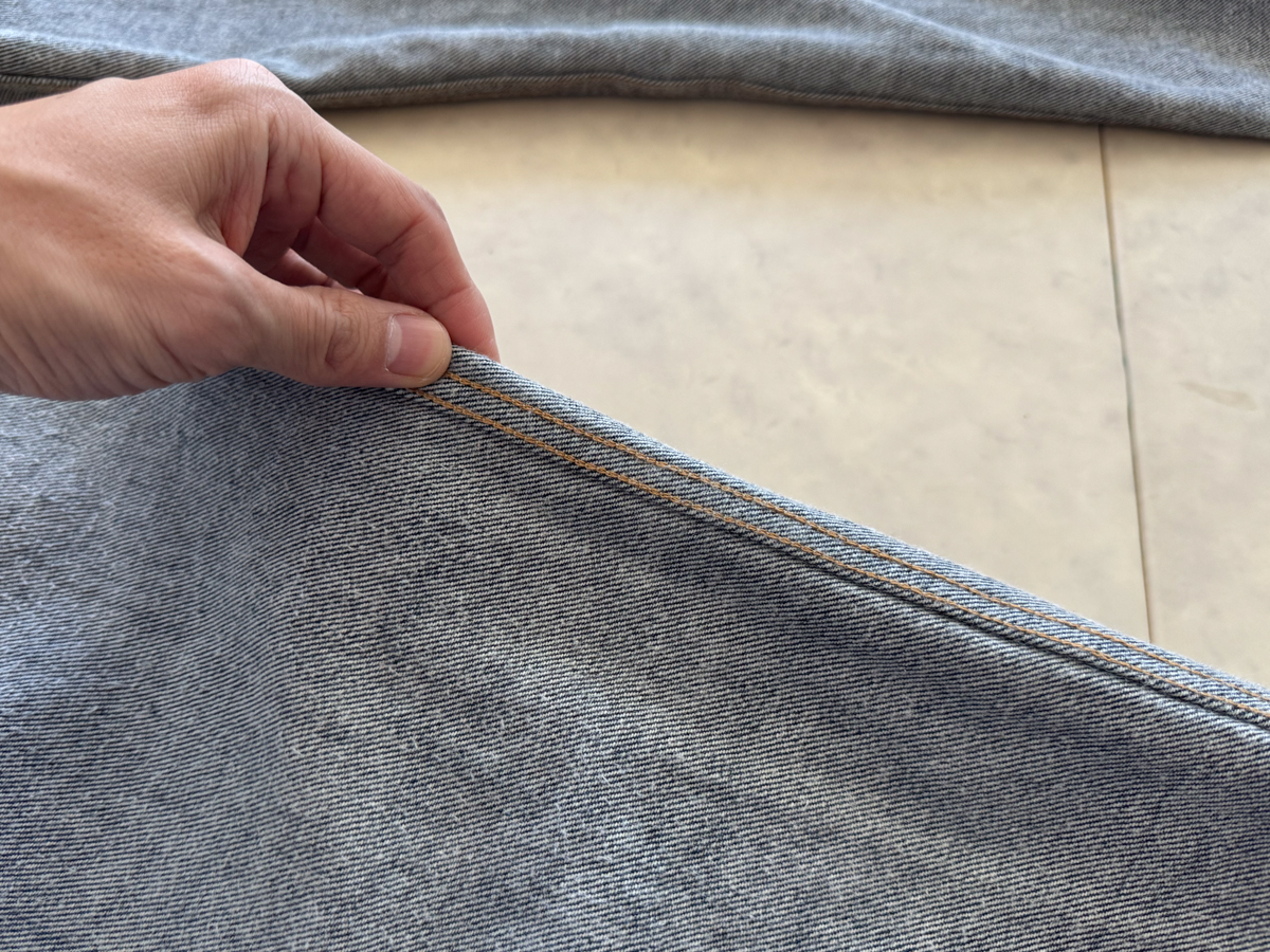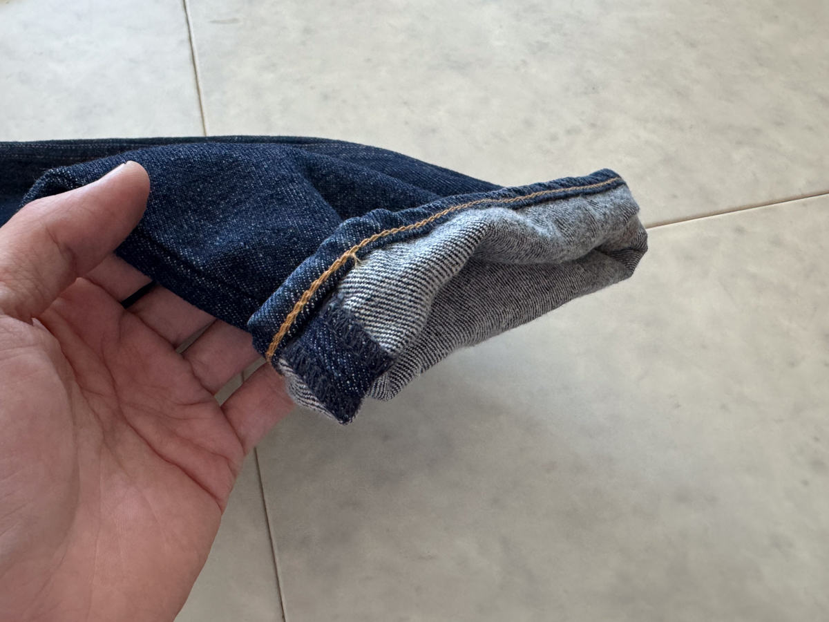 - 기장: 오라리 데님은 총장이 길게 나오는 편이므로, 롤업을 할 수도 있겠지만 본인의 체형에 맞게 수선하여 입는 것을 추천합니다.