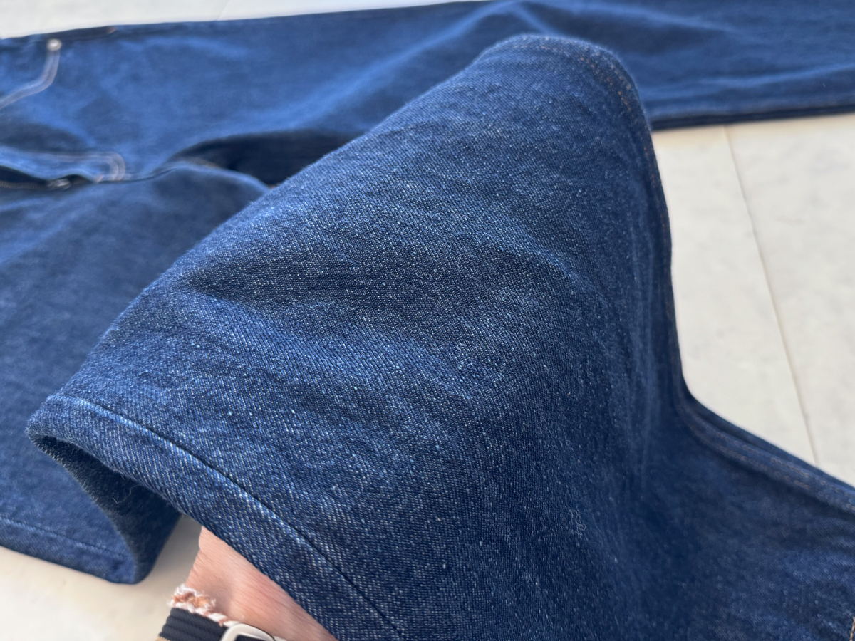 하드 트위스트라는 이름에서 알 수 있듯이, 이 데님은 특유의 꼬임이 강한 실을 사용하여 탄탄하고 독특한 질감을 자랑합니다.