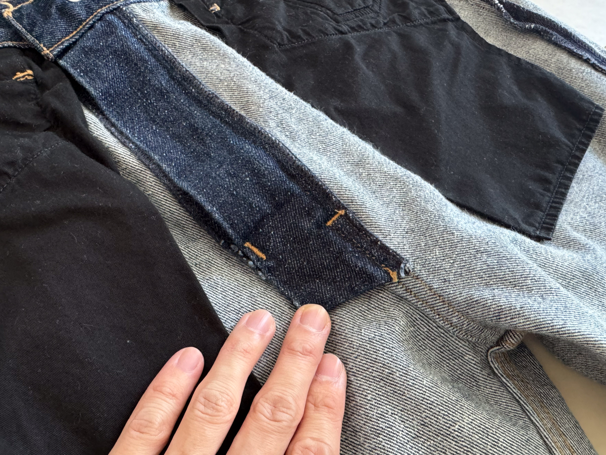 실제로 입어보면 기존에 입던 데님과 다른 촉감을 느낄 수 있는데요.