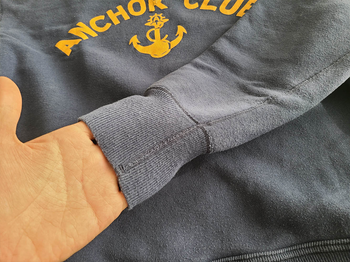 LOT403과 함께 웨어하우스 스웻 셔츠 베이스라인이며 원단에 수축 가공을 하지 않아 세탁 시 한 치수 이상 줄어드는 특징이 있습니다. LOT403에 비해 어깨선은 밑으로 좀 더 내려와 있고 어깨와 팔을 이어붙인 봉제 방식이 조금 다르지만 전체적인 핏 감은 비슷했습니다. 루프 휠 방식 원단 짜임으로 옆 봉제선이 없어 편안한 착용감이 특징이고 복각 스웻 셔츠에서 많이 볼 수 있는 전체적으로 품은 넓고 기장은 짧은 편입니다.