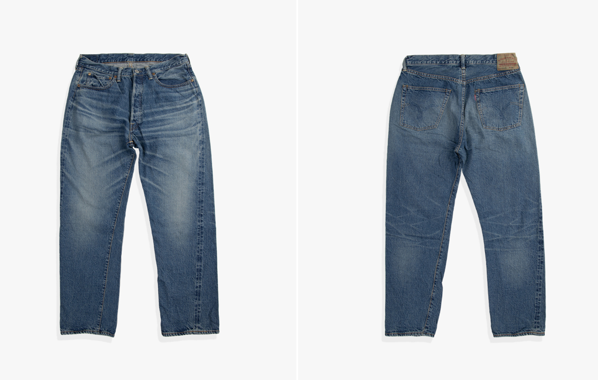 LOT 1001 - 청바지가 워크웨어에서 본격적으로 패션으로 자리매김한 1947년의 501을 베이스로 제작됩니다. 구형 리벳과 가죽 패치가 사용되었으며 당시의 느낌을 재현하기 위해 미국 내 생산되는 3가지 면사(테네시, 텍사스, 애리조나)를 혼합하여 구식 방직기를 통해 만들어진 데님원단을 사용합니다. 스트레이트한 핏감을 보여줍니다.