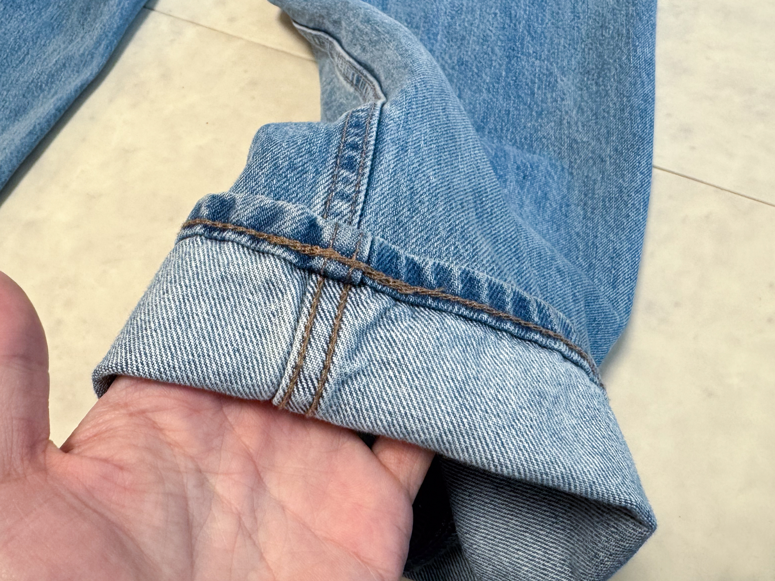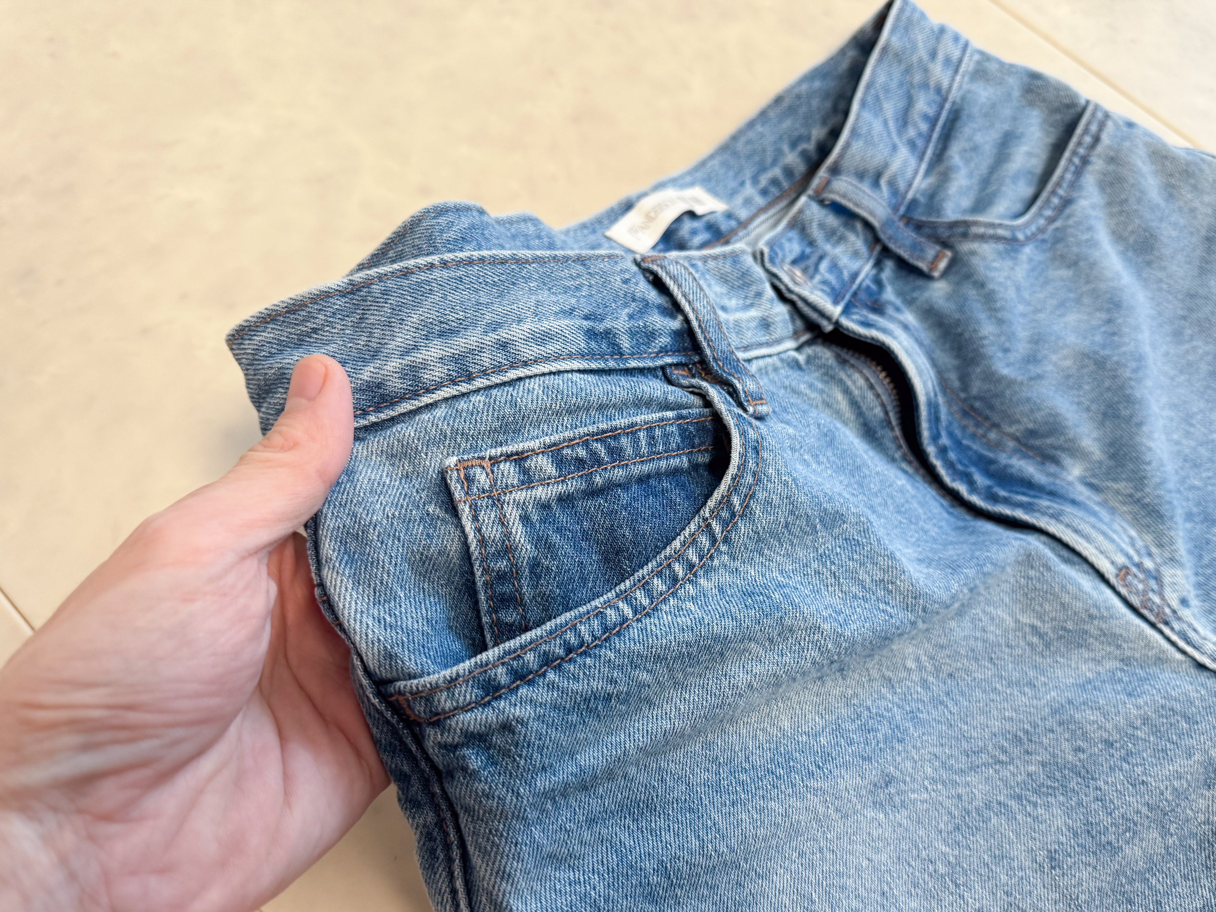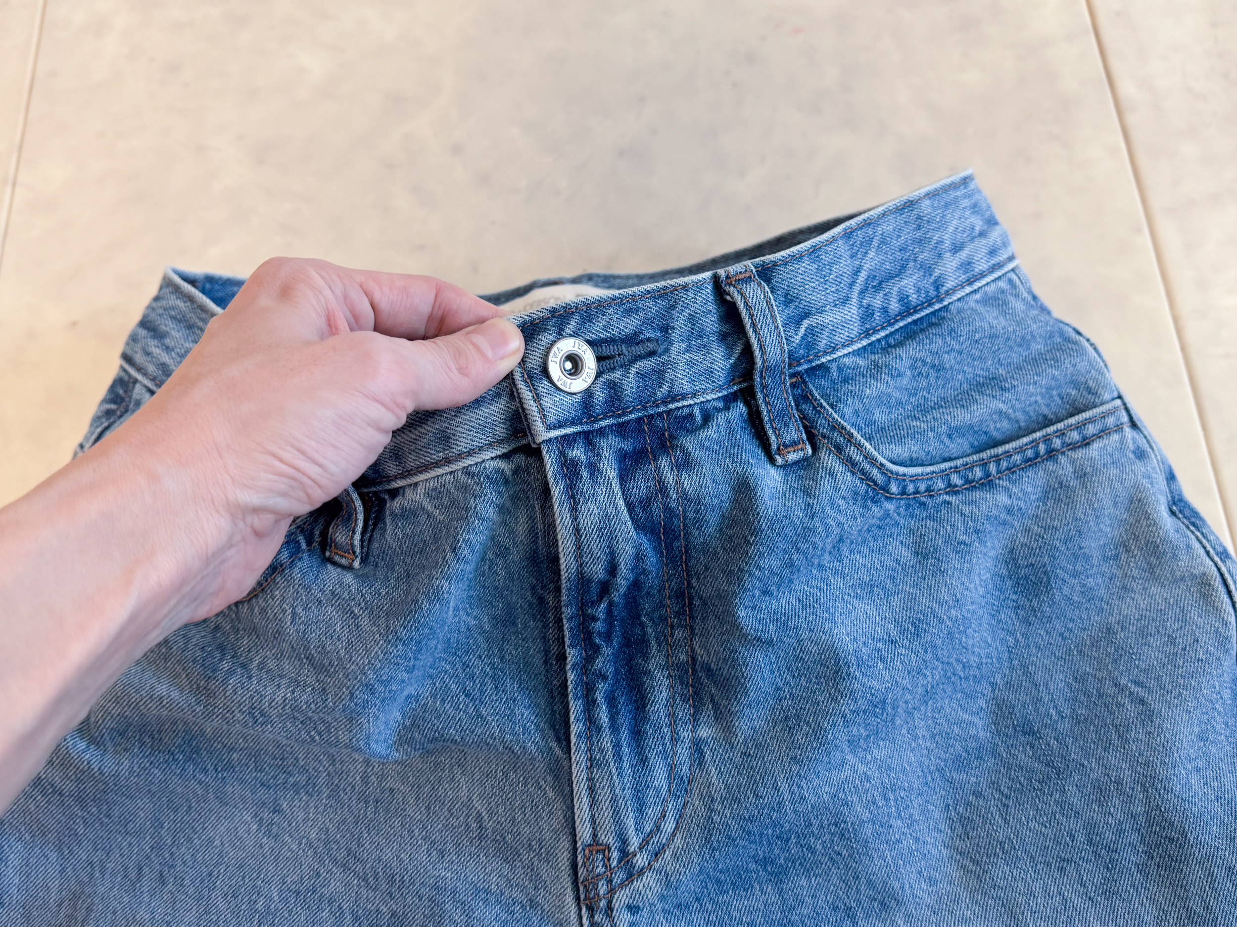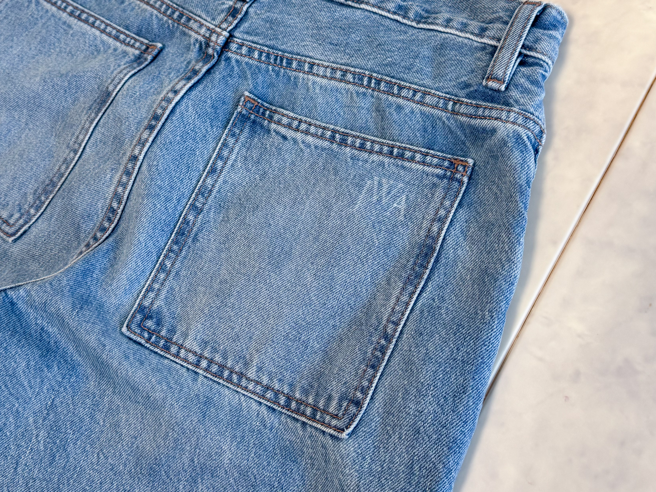 - 원단: 두께가 너무 얇지도 두껍지도 않아 사계절 활용 가능한 데님.