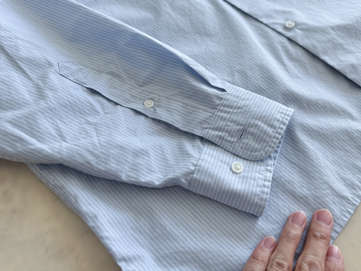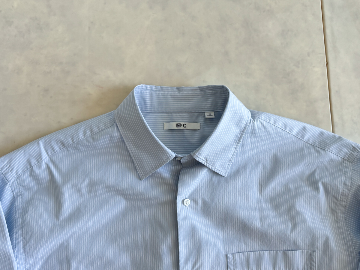 유니클로 셔츠는 보통 L 사이즈를 입는데, 이 제품은 M 사이즈가 딱 좋게 (174cm기준)맞았습니다.