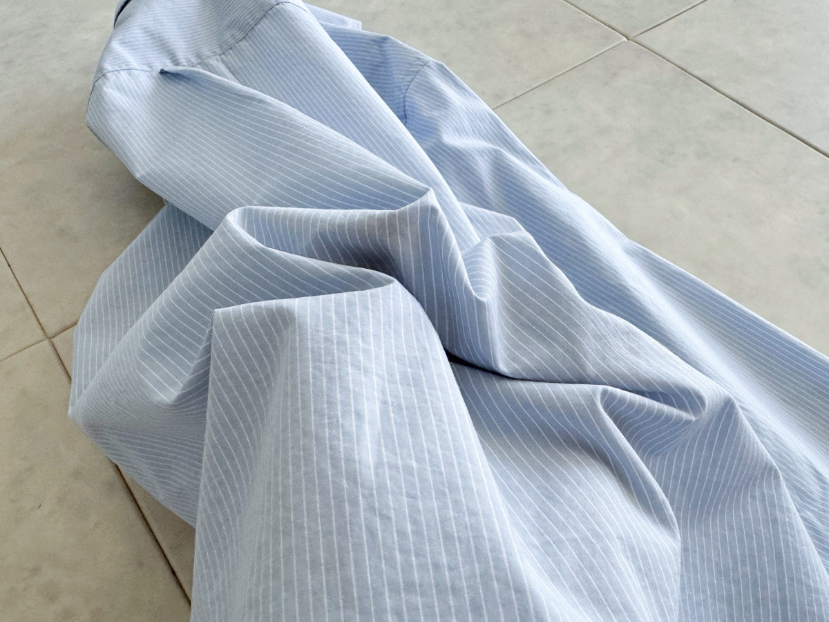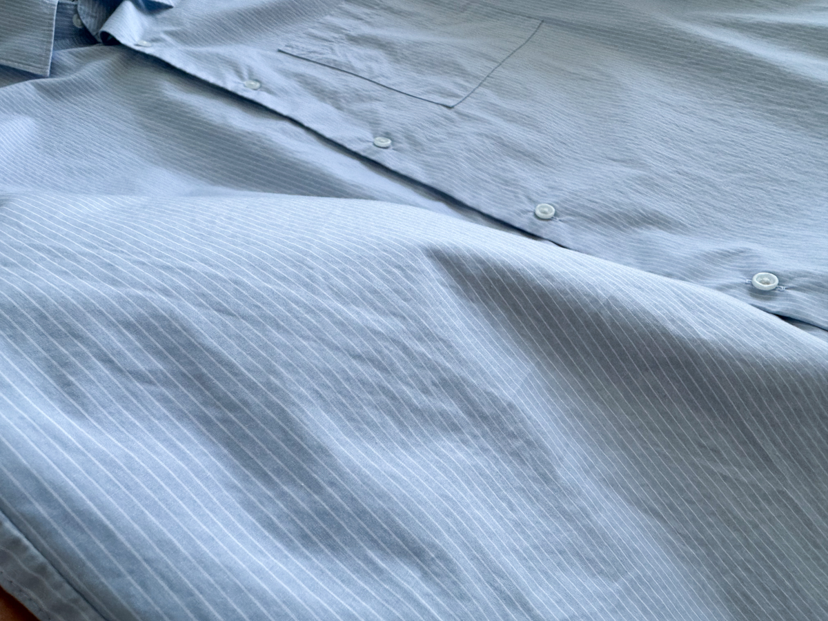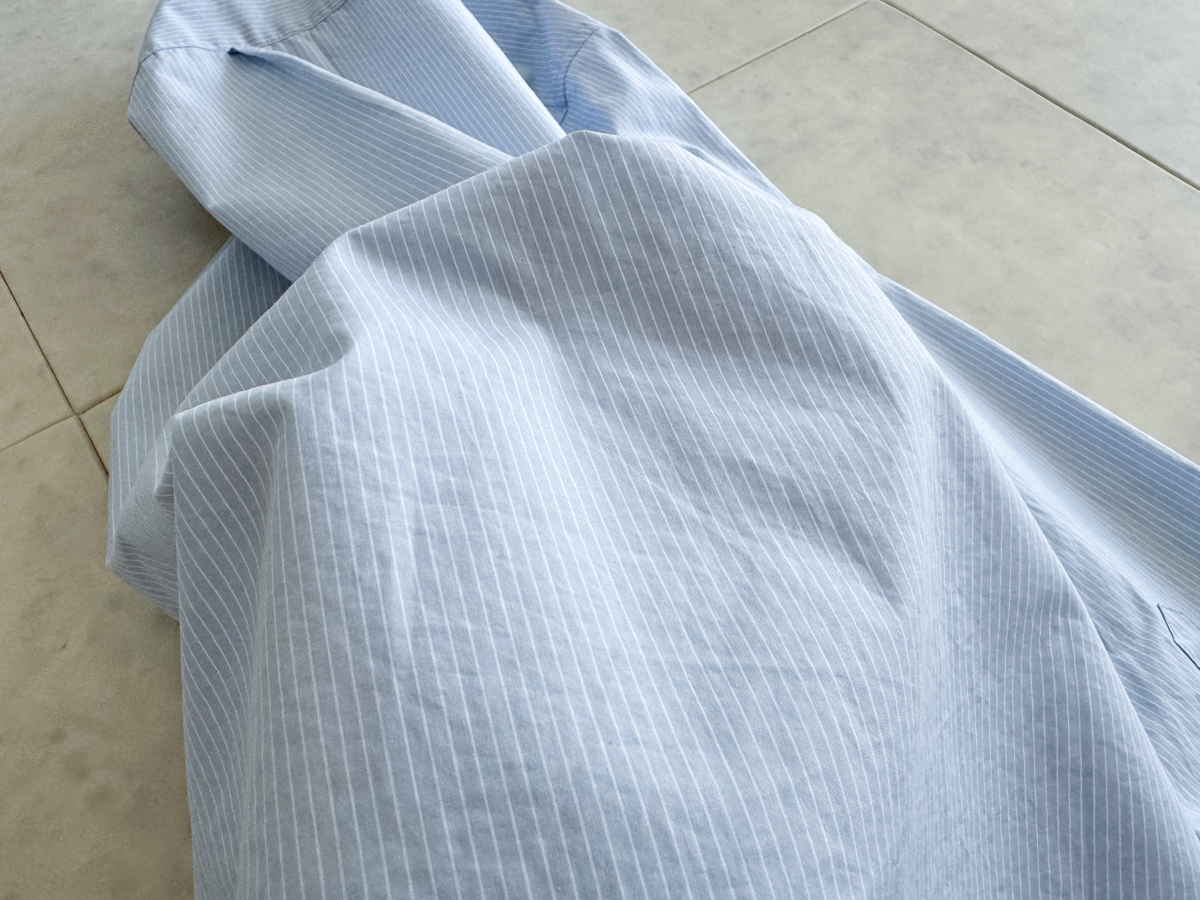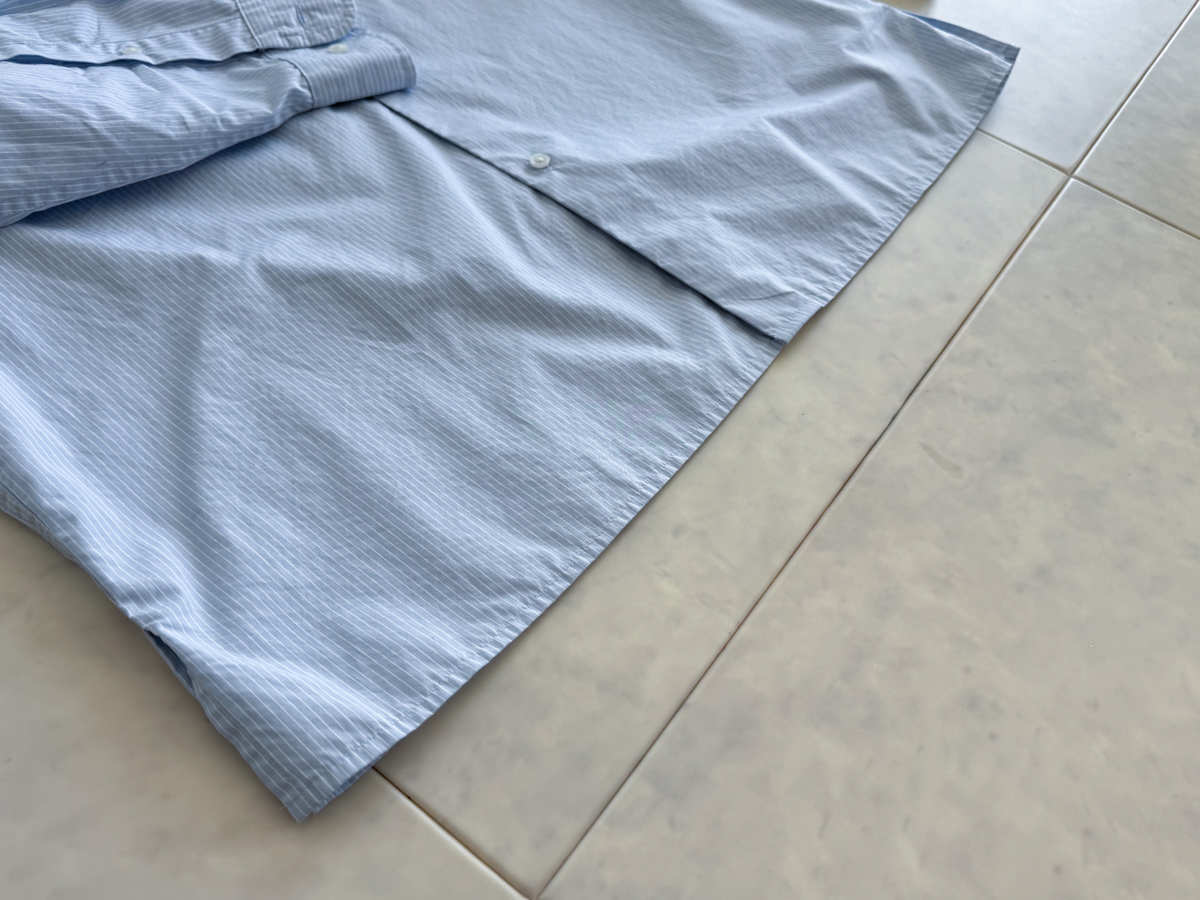 저는 그중에서도 브로드오버사이즈 셔츠를 직접 구매하여 입어보았습니다. 공개된 여러 컬러 중에서도 특히 잔잔한 스트라이프가 들어간 블루 컬러는 깔끔하면서도 유니크한 매력을 지니고 있어 구매하였습니다.
