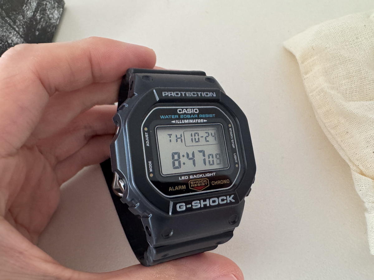 '군인 시계'라는 별명을 가진 지샥 5600은 카시오의 역사를 대표하는 모델입니다. 저는 애플 워치나 비싼 시계에는 큰 관심이 없지만, 일상에서 가볍고 튼튼한 시계를 찾다 보니 자연스럽게 지샥 5600에 이끌렸습니다. 액세서리 개념의 시계를 즐기면서도, 어느새 손목을 드는 습관이 생기더군요.