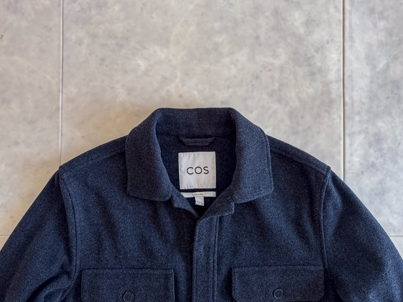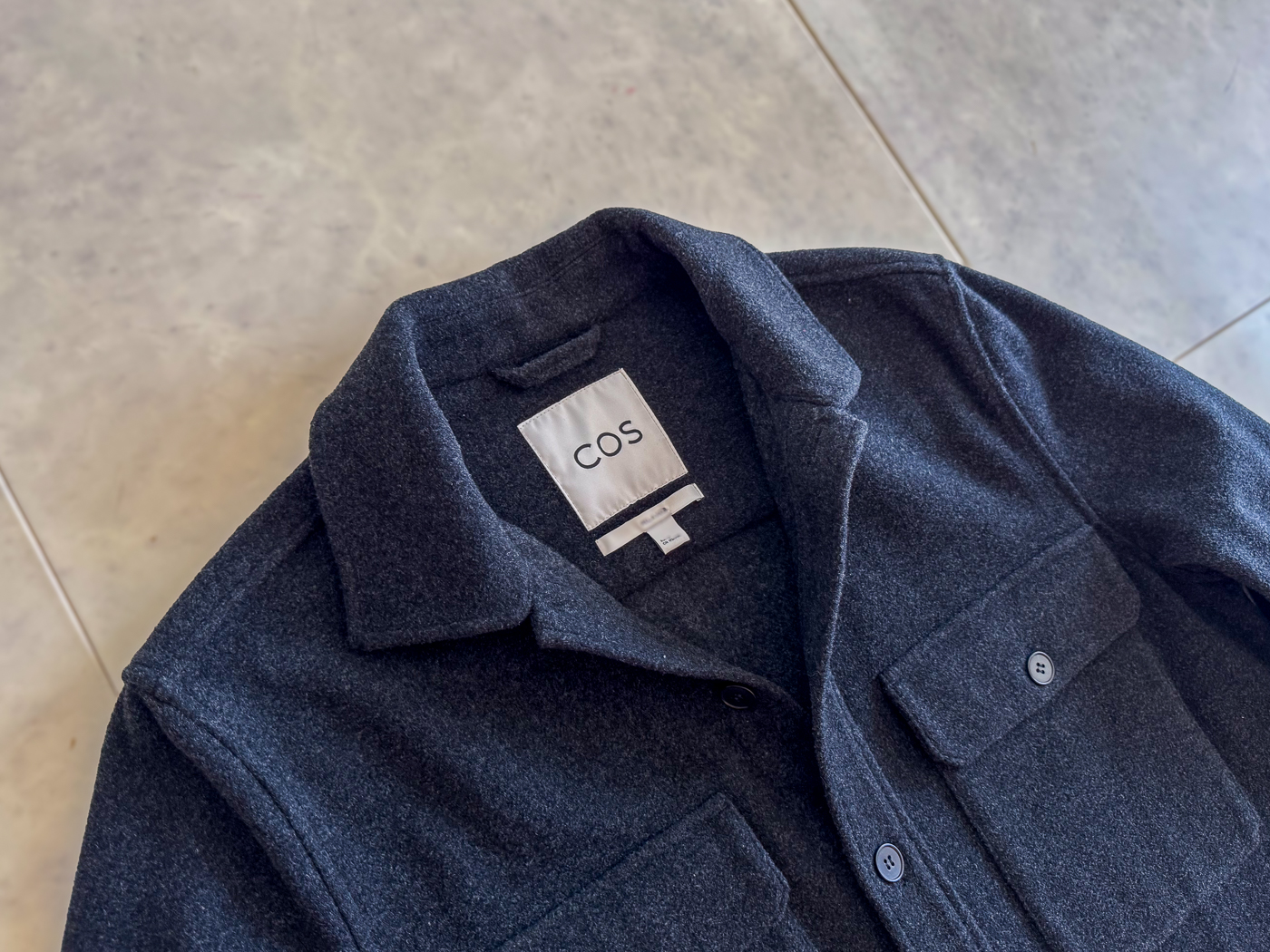 코스(COS)의 울 셔츠재킷은 간절기뿐만 아니라 한겨울에도 활용할 수 있는 보온성과 실용성을 갖춘 제품입니다.
