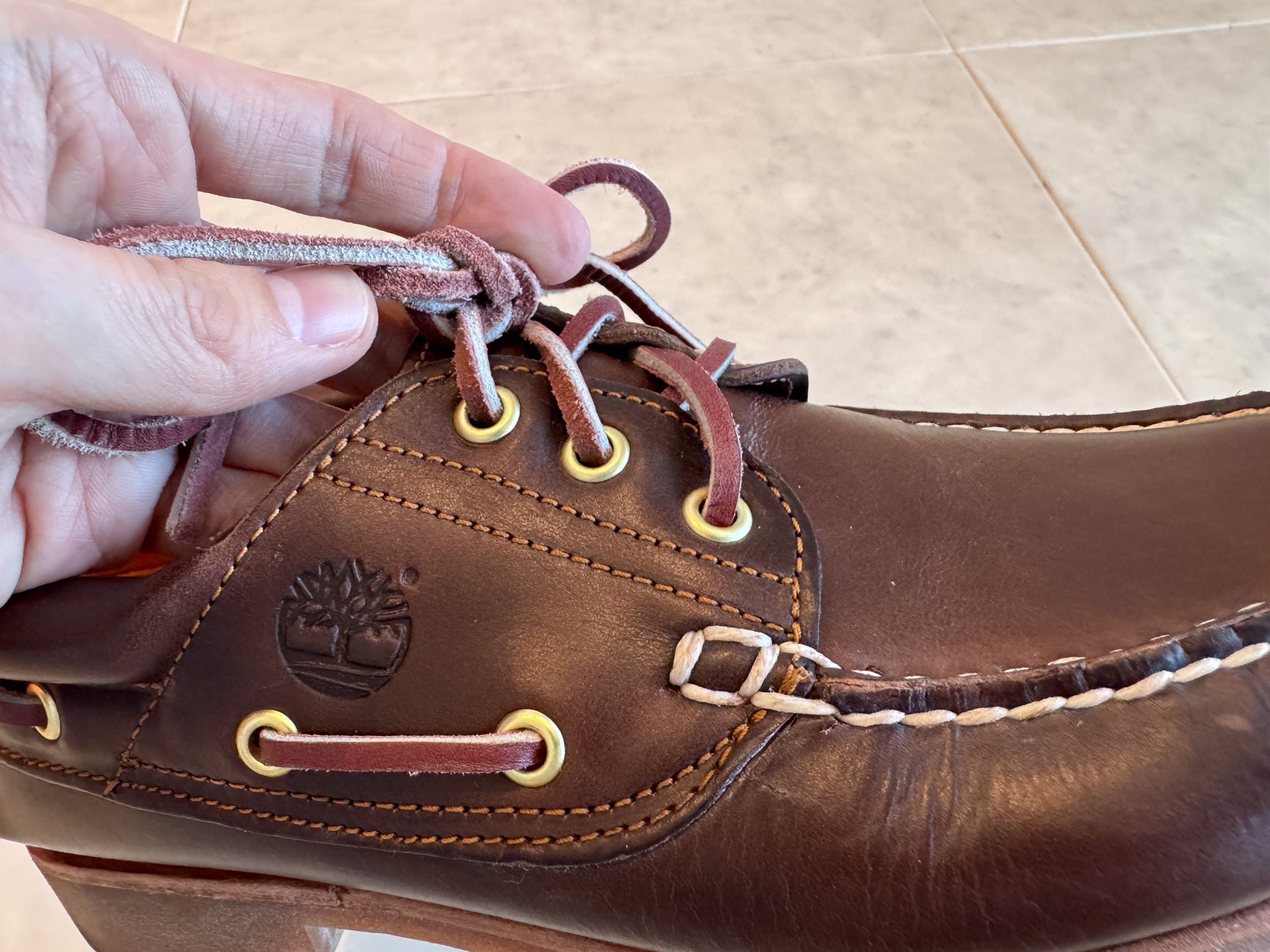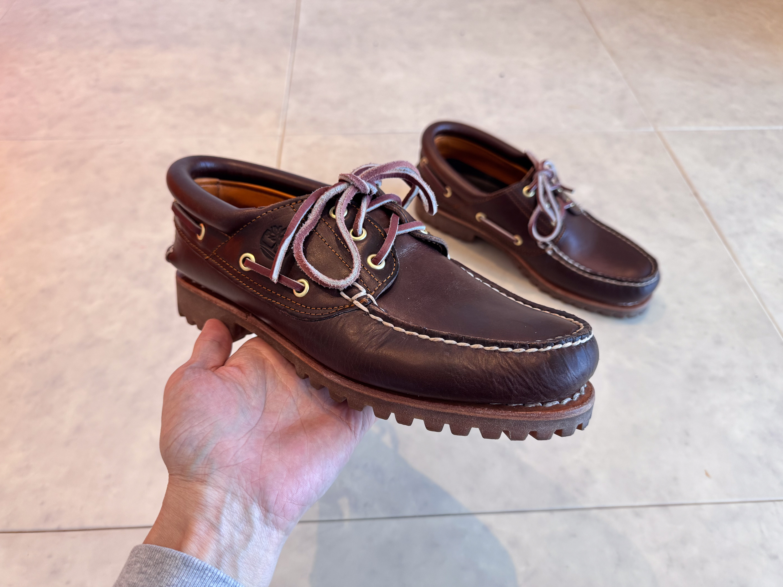 팀버랜드(Timberland)는 1970년대 후반 보트슈즈가 유행하던 시기에 자신들만의 방식으로 보트슈즈를 재해석했습니다. 기존의 보트슈즈보다 내구성을 높이기 위해 워크 부츠 기술을 적용, 러거 아웃솔을 추가했으며, 2개의 슈레이스 홀이었던 기존 디자인에 하나를 더해 보다 안정적인 착화감을 제공하도록 만들었습니다.