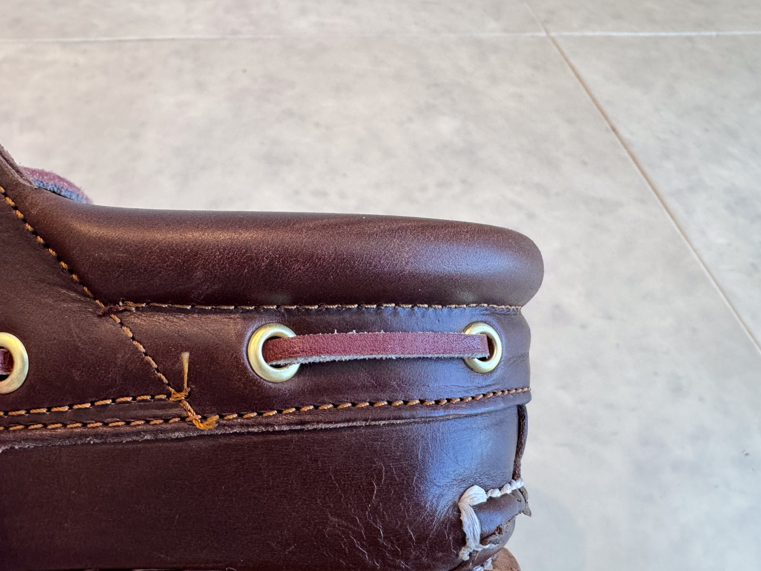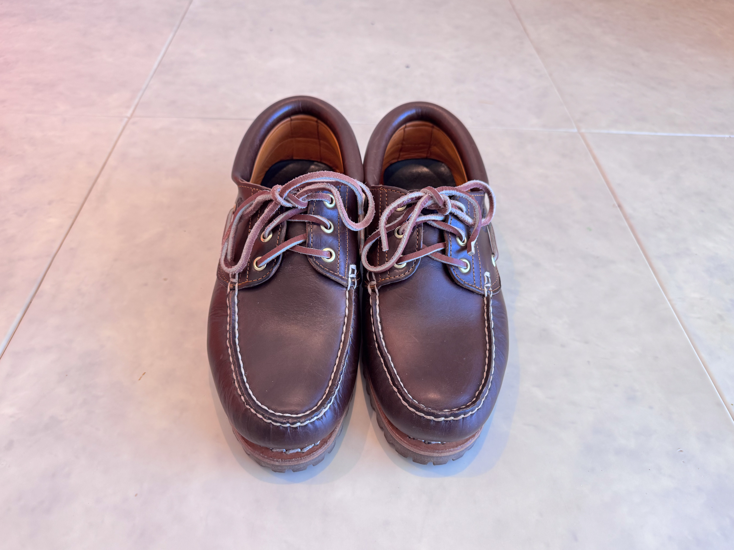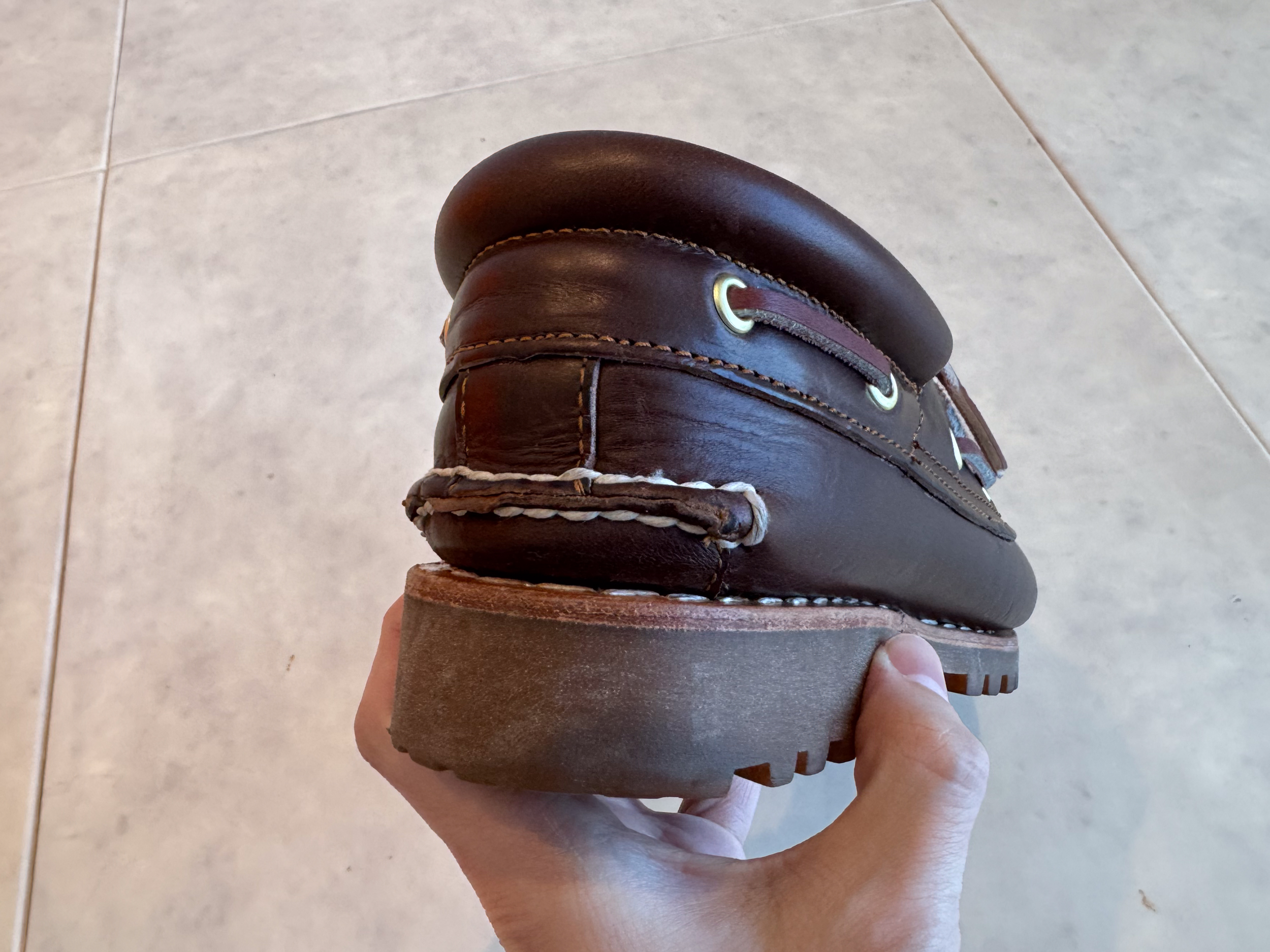 - 일반적인 보트슈즈보다 견고한 디자인과 두꺼운 러거 아웃솔이 특징.