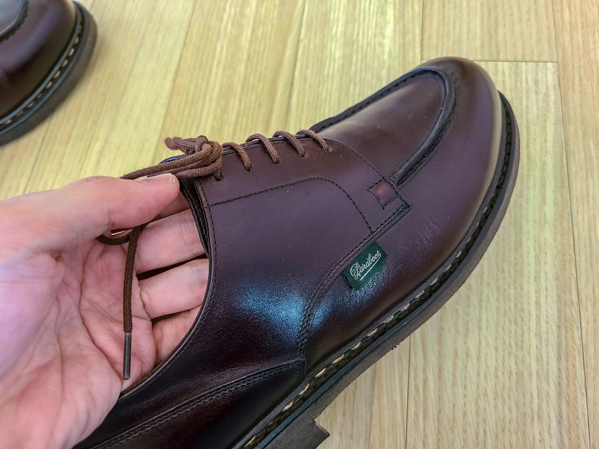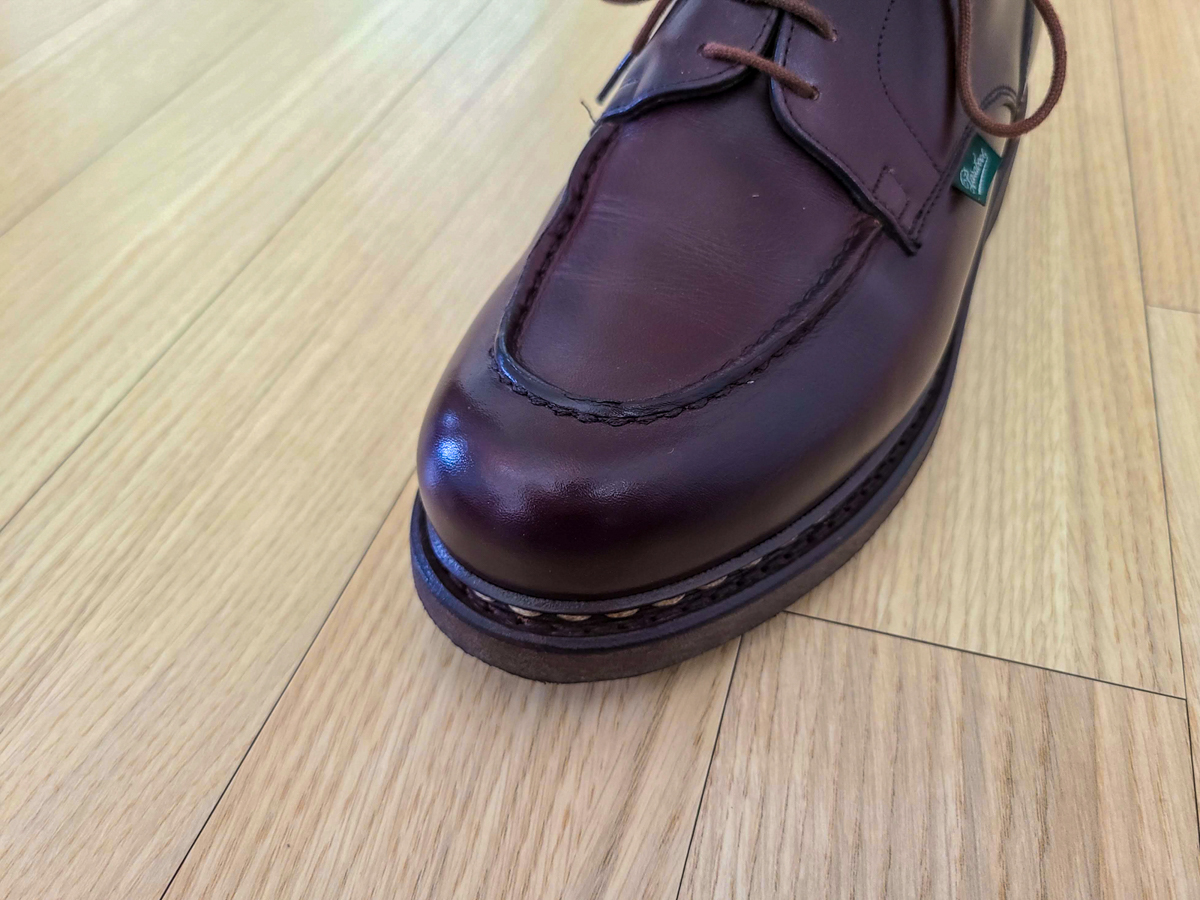 이미 이전글에서도 설명을 한 바 있지만, 파라부트는 프랑스의 제화 브랜드로 프랑스 브랜드 특유의 실용적이면서 화려하진 않지만 어디든 매치하기 쉬운 디자인의 신발이 많습니다. 특히 샴보드는 끝이 둥근 프렌치 U팁의 형태로 캐주얼은 물론 경조사(주로 경사를 추천하긴 합니다)에서도 괜찮습니다.