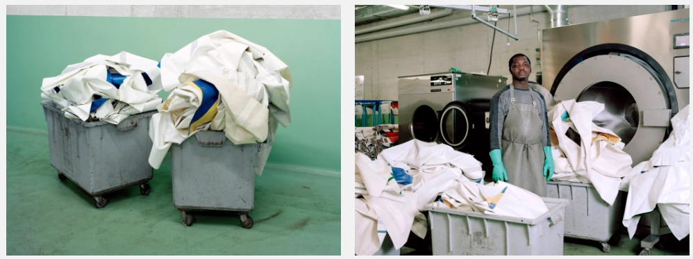 3. 세탁 - 프라이탁은 거의 매일 15,000리터의 빗물과 방수 세탁 첨가제를 사용해 세탁 후 건조 작업을 거칩니다.