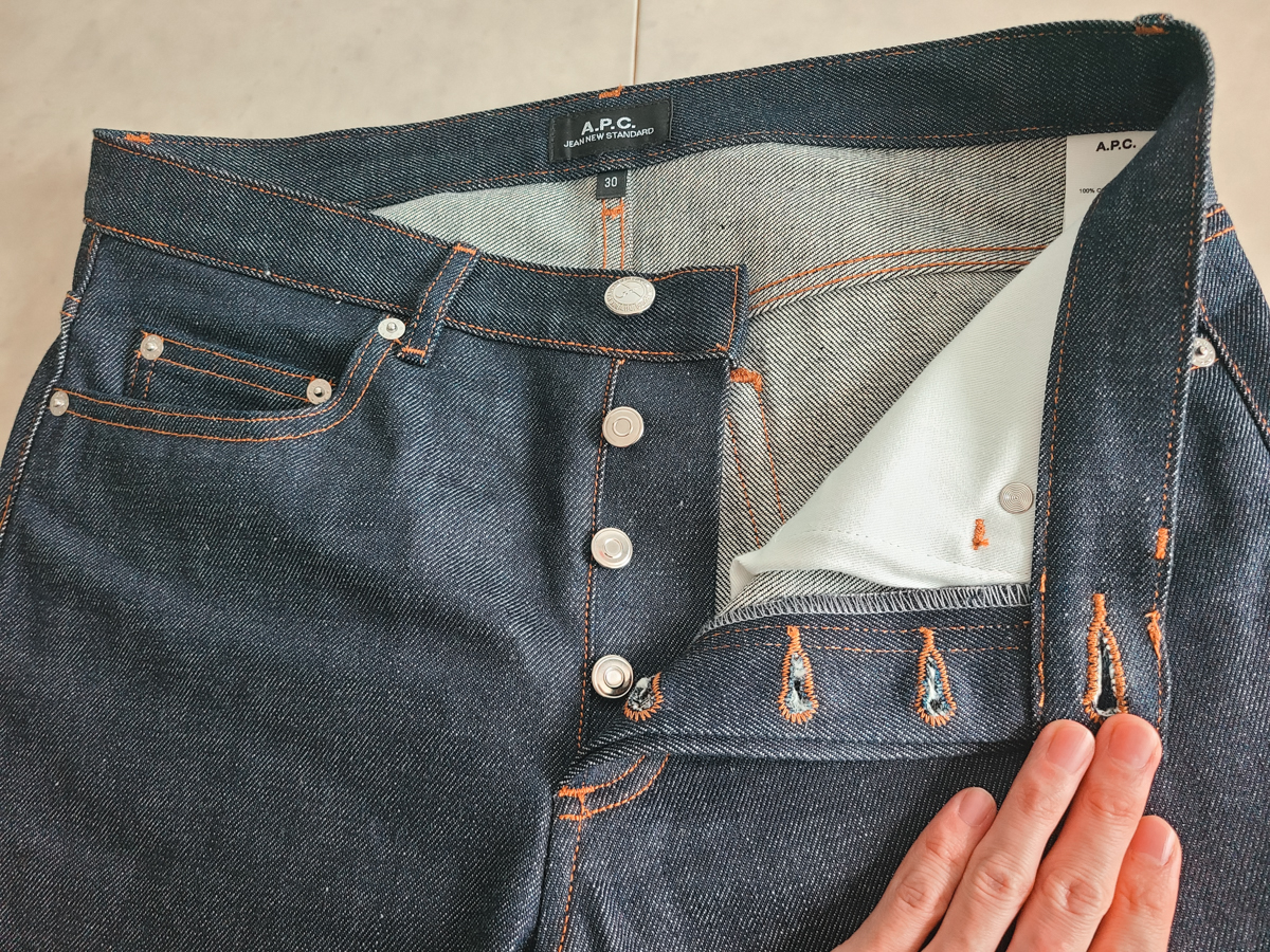 APC의 데님은 클래식한 버튼 플라이를 채용하고 있습니다.