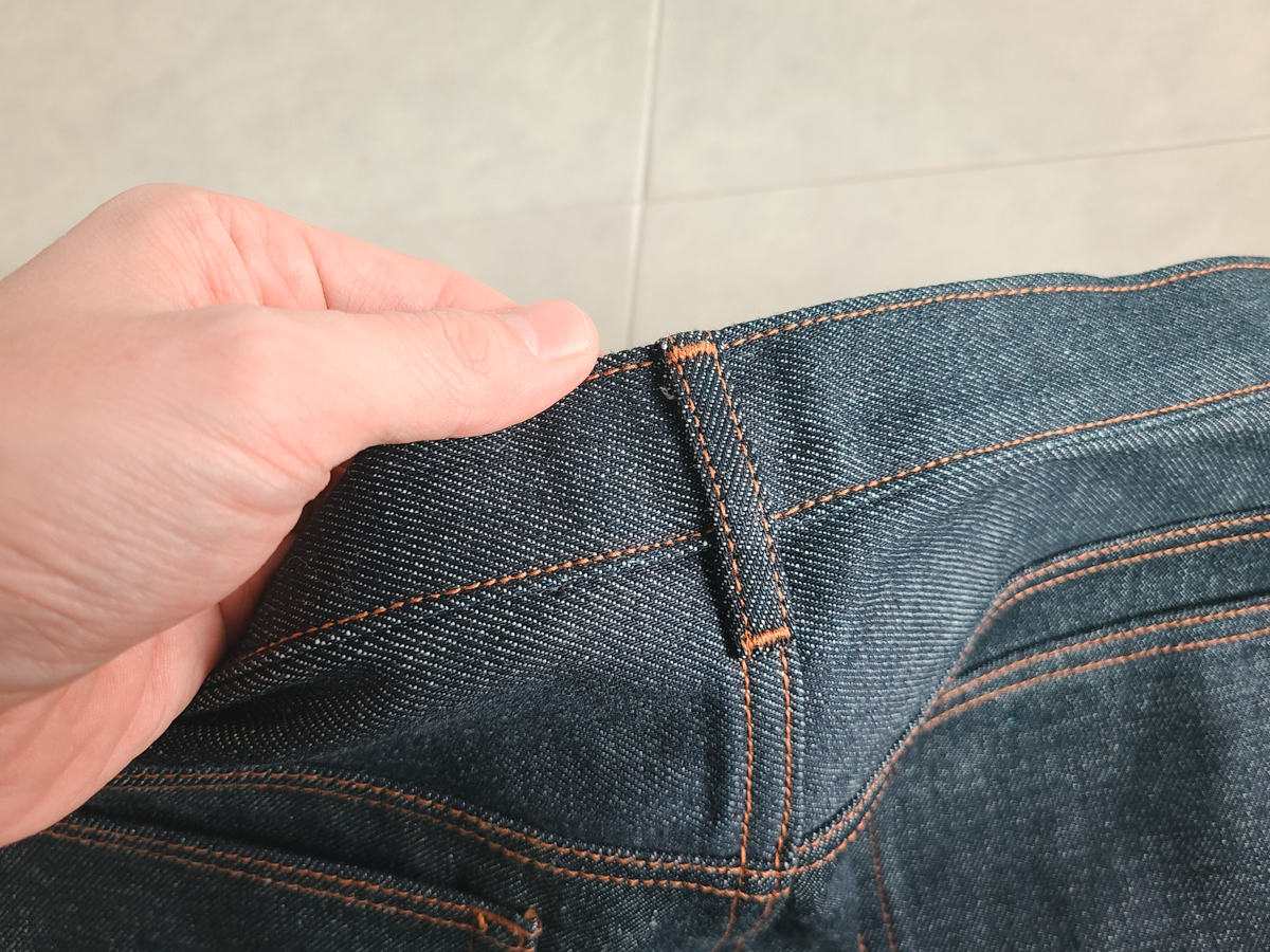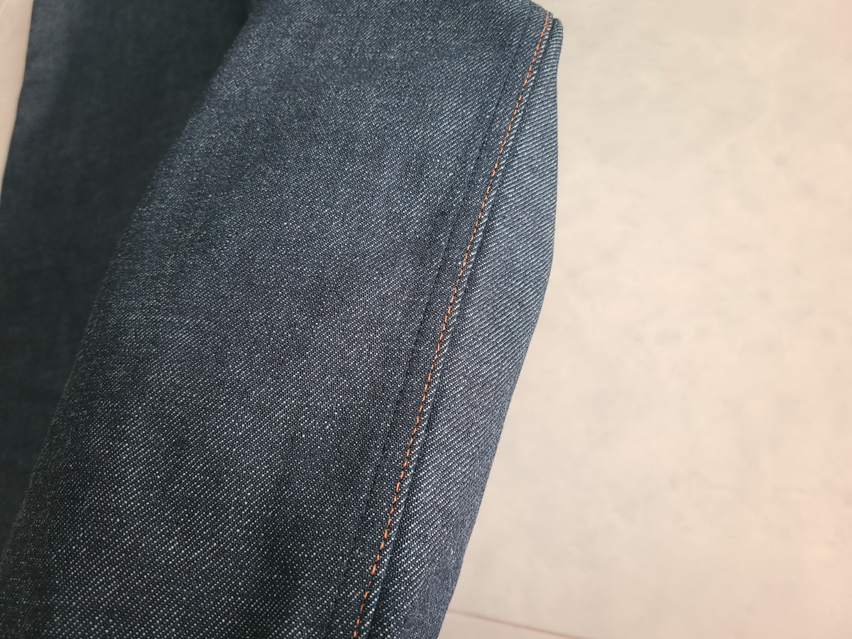 밑단 스티치는 체인 스티치가 아닌 싱글 스티치로 체인 특유의 퍼커링은 아니겠지만 사실 싱글 스티치의 퍼커링도 괜찮습니다.