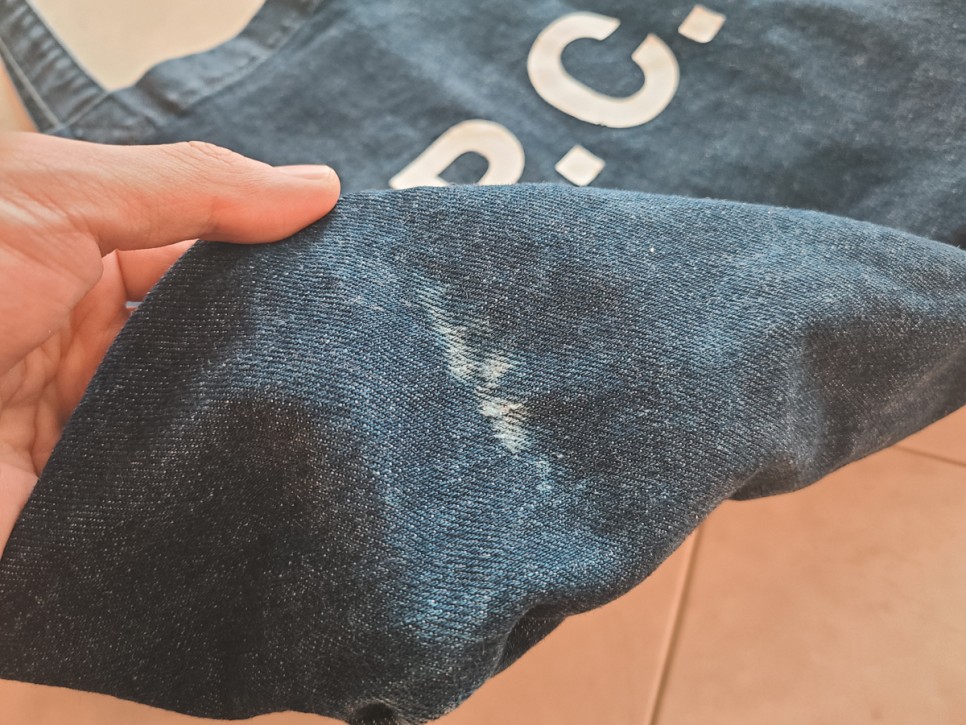 그래도 서서히 데님 원단의 에이징이 생기고 있고 사용하면서 나염이 점점 떨어지거나 밑단이 쓸려 까지는 등의 변화도 일어나고 있어요.