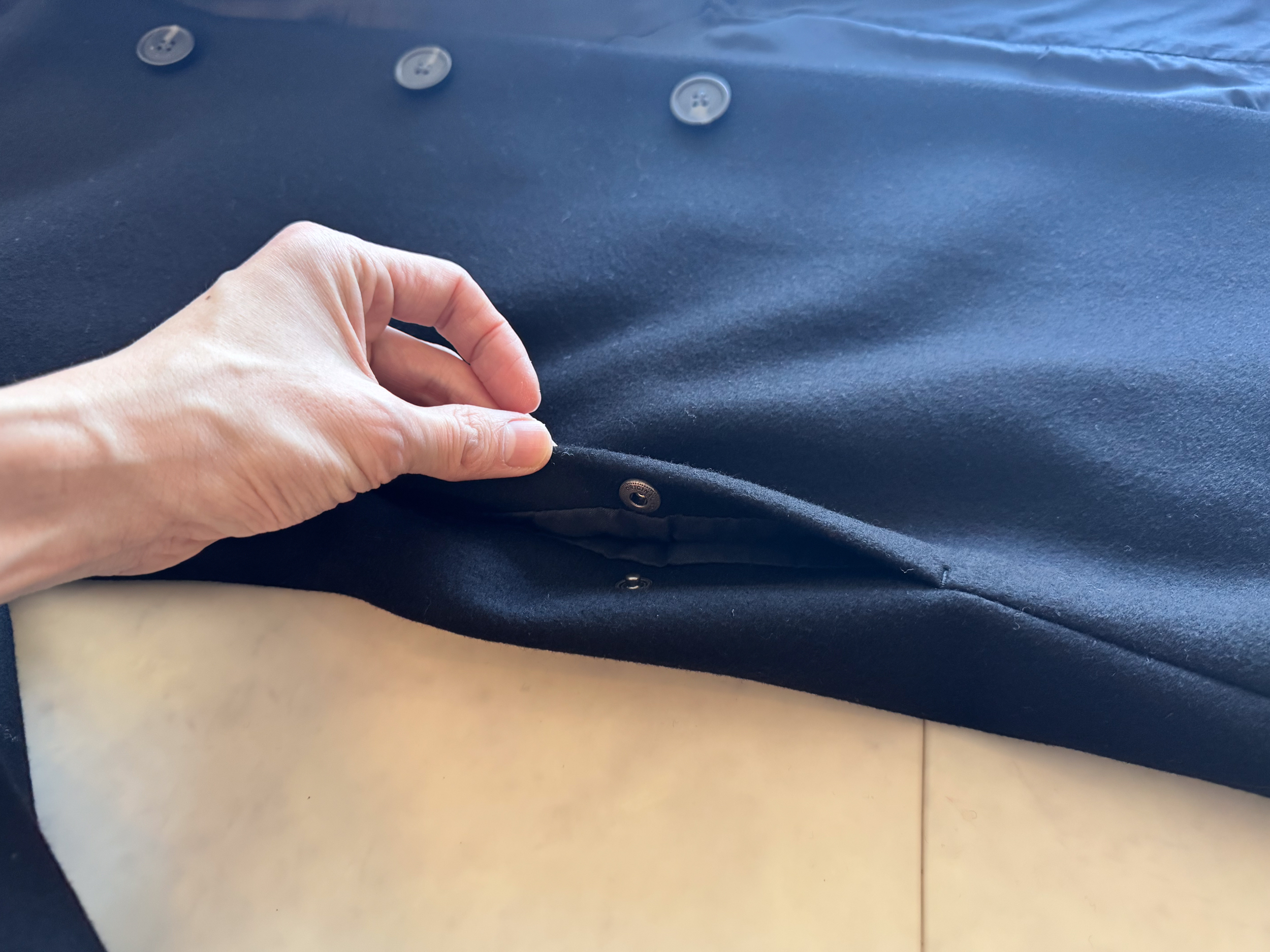 옆선에 있는듯 없는듯한 사이드포켓은 꽤 깊고 스냅버튼이 있어 유용하다.